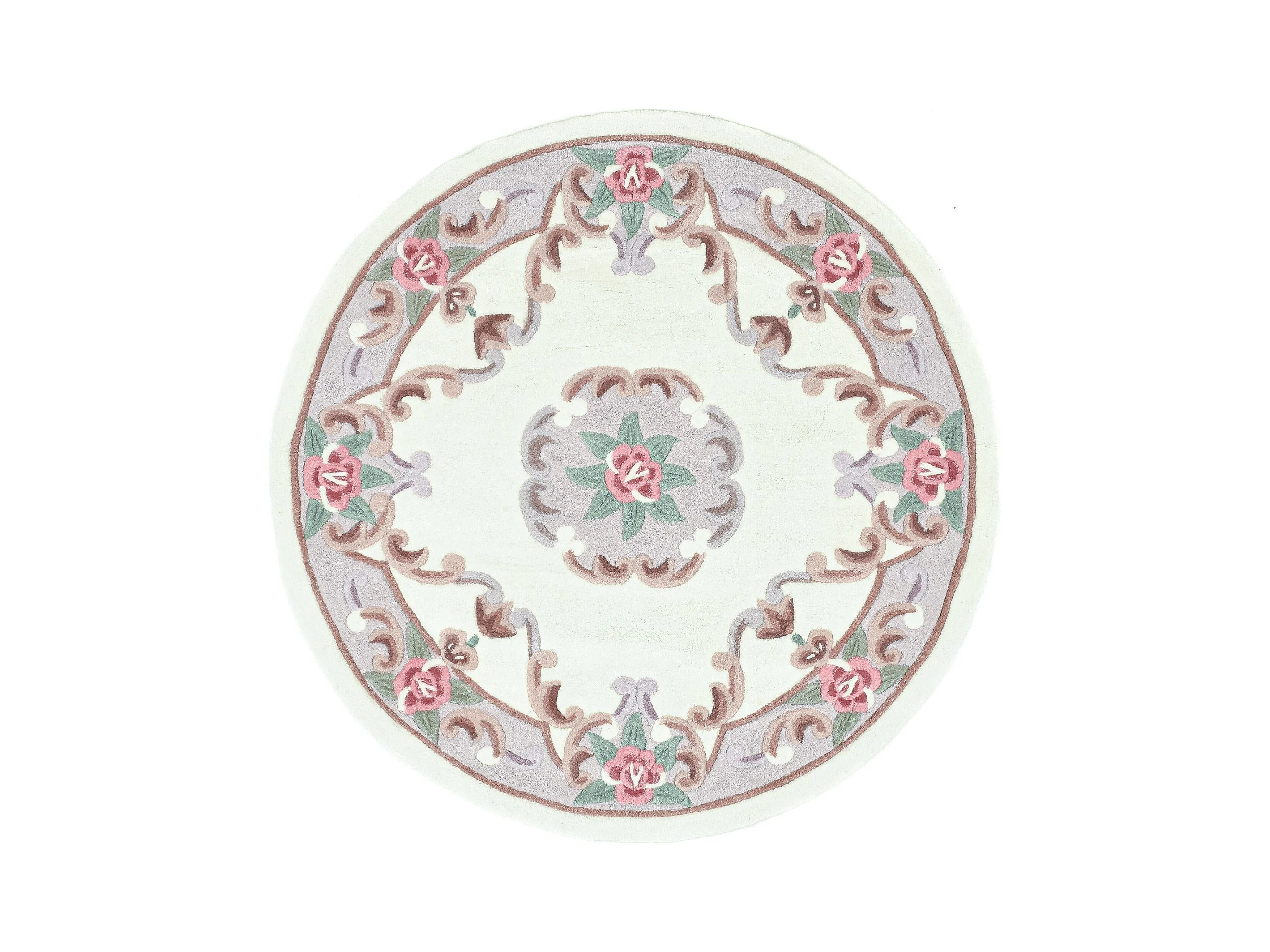 Tapis tufté à la main avec bordure, style Aubusson 150x150 cm beige Ming