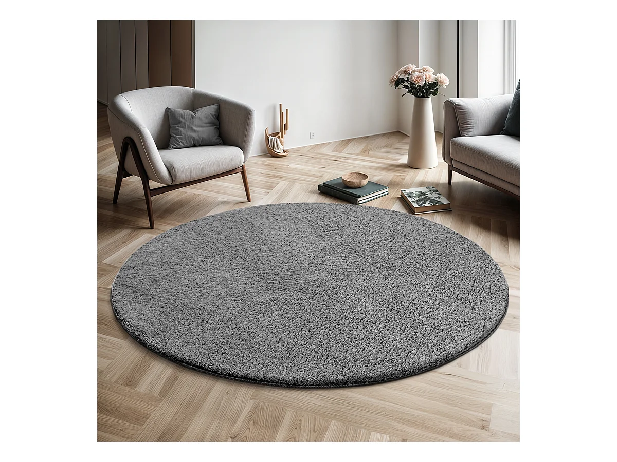Tapis IZA poils courts style scandinave anthracite Ø 160cm