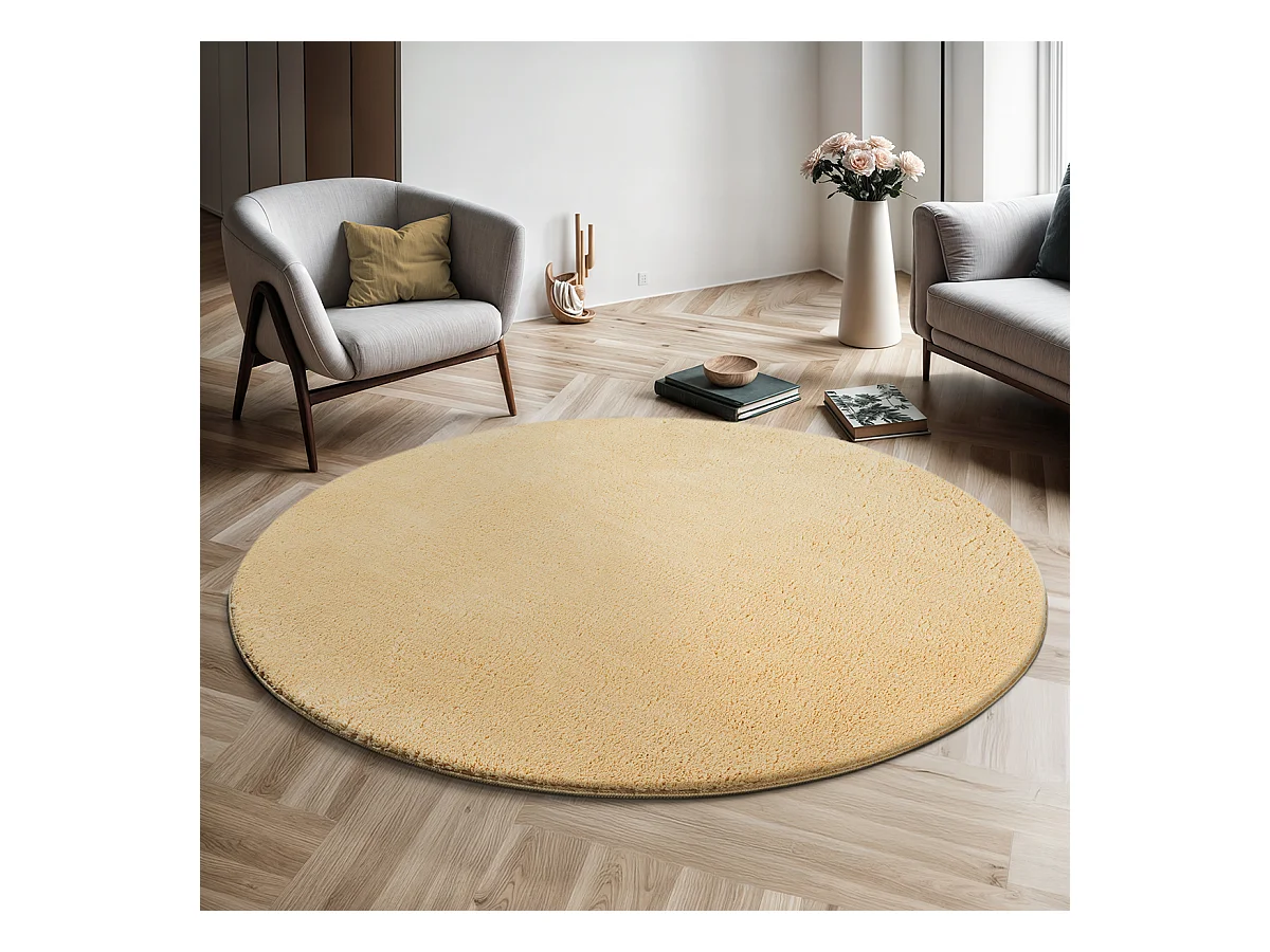 Tapis shaggy à poils longs moderne doré Ø 120cm