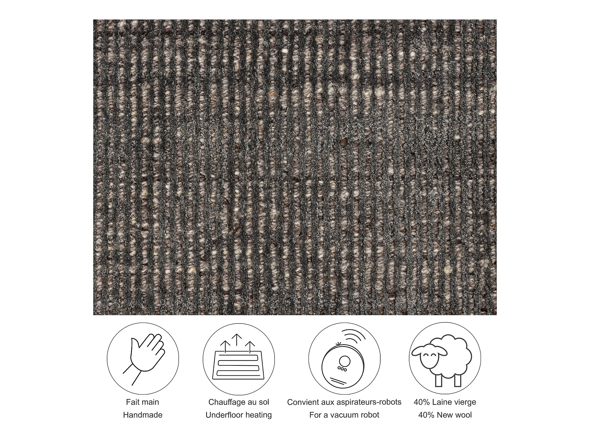 Tapis UNI rayé en viscose et laine 120x120 cm anthracite Venus