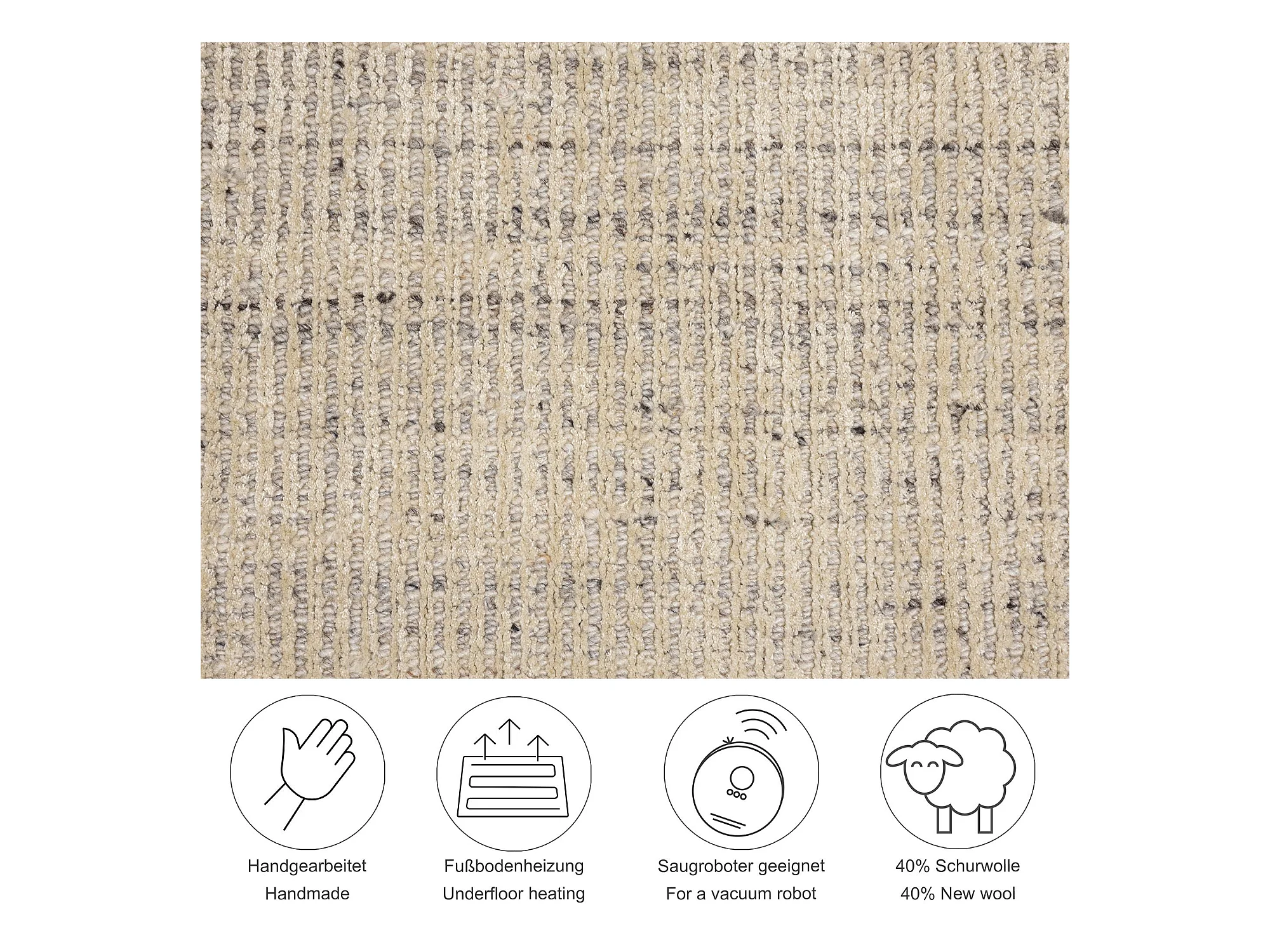 Tapis UNI rayé en viscose et laine 120x180 cm beige Venus