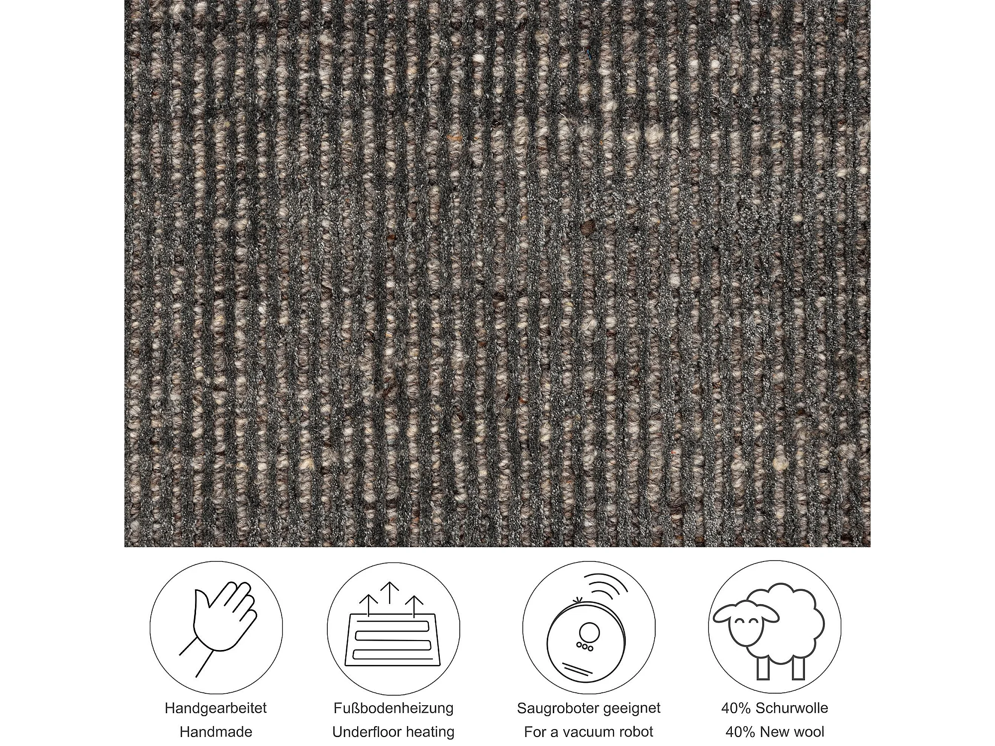 Tapis UNI rayé en viscose et laine 90x160 cm anthracite Venus