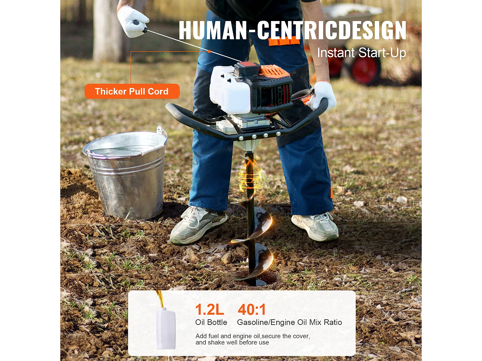 Tarière à Essence Thermique, SucceBuy Tarière à Gaz 52CC 1450W Avec Forets de 20.32 CM