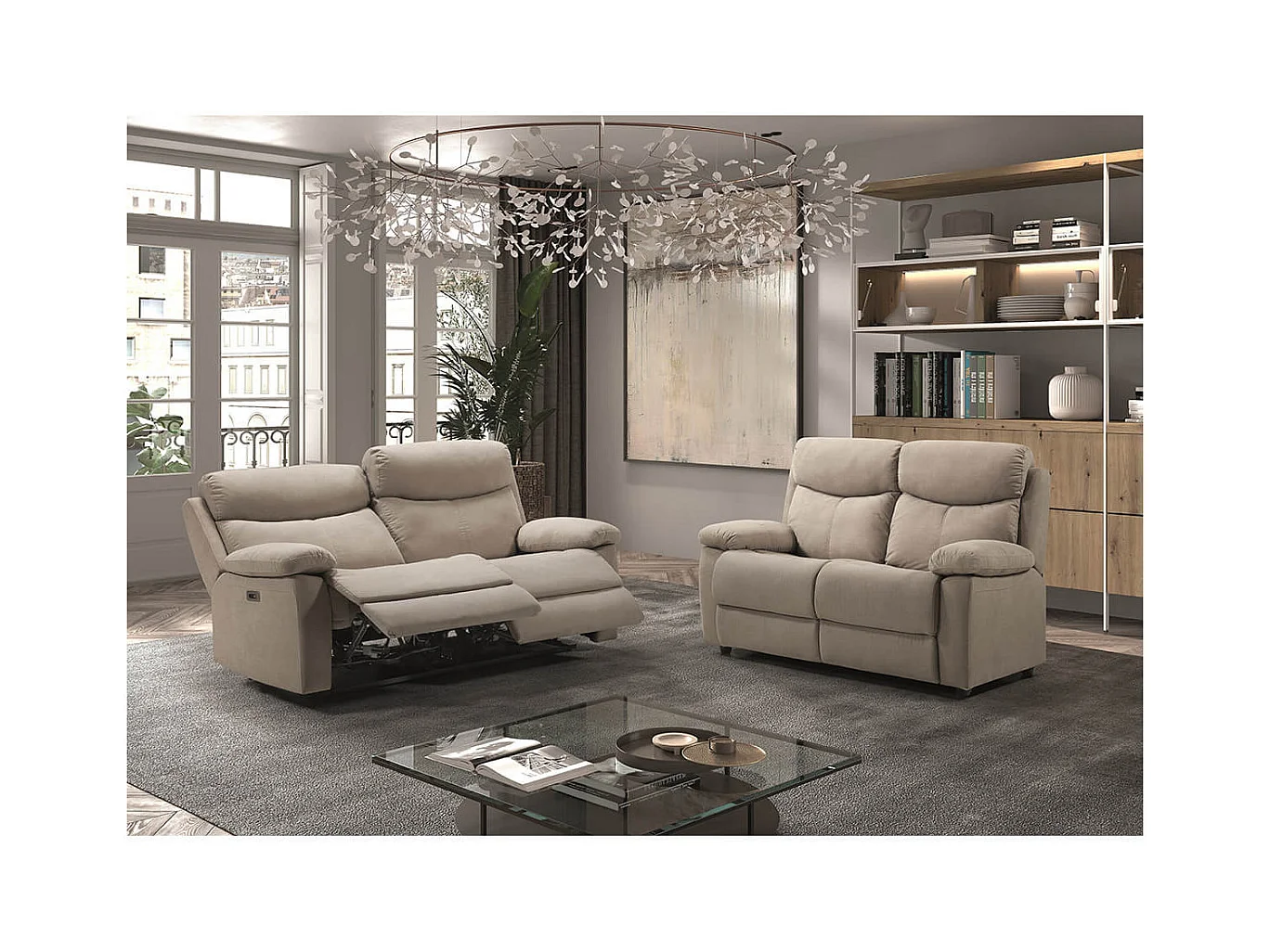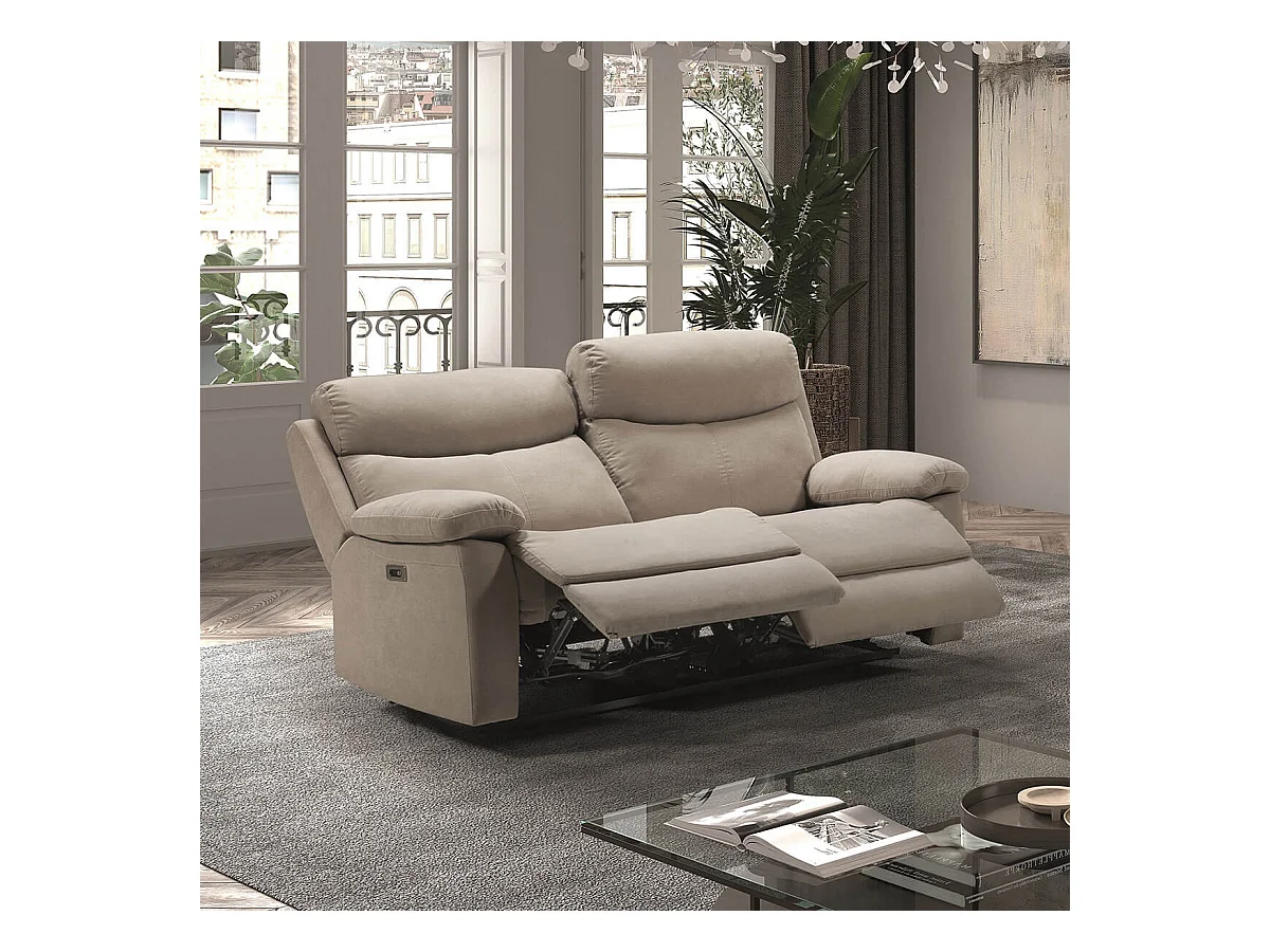 TARIFA - Canapé 3 Places Relax Electrique Beige Tissu Waterproof