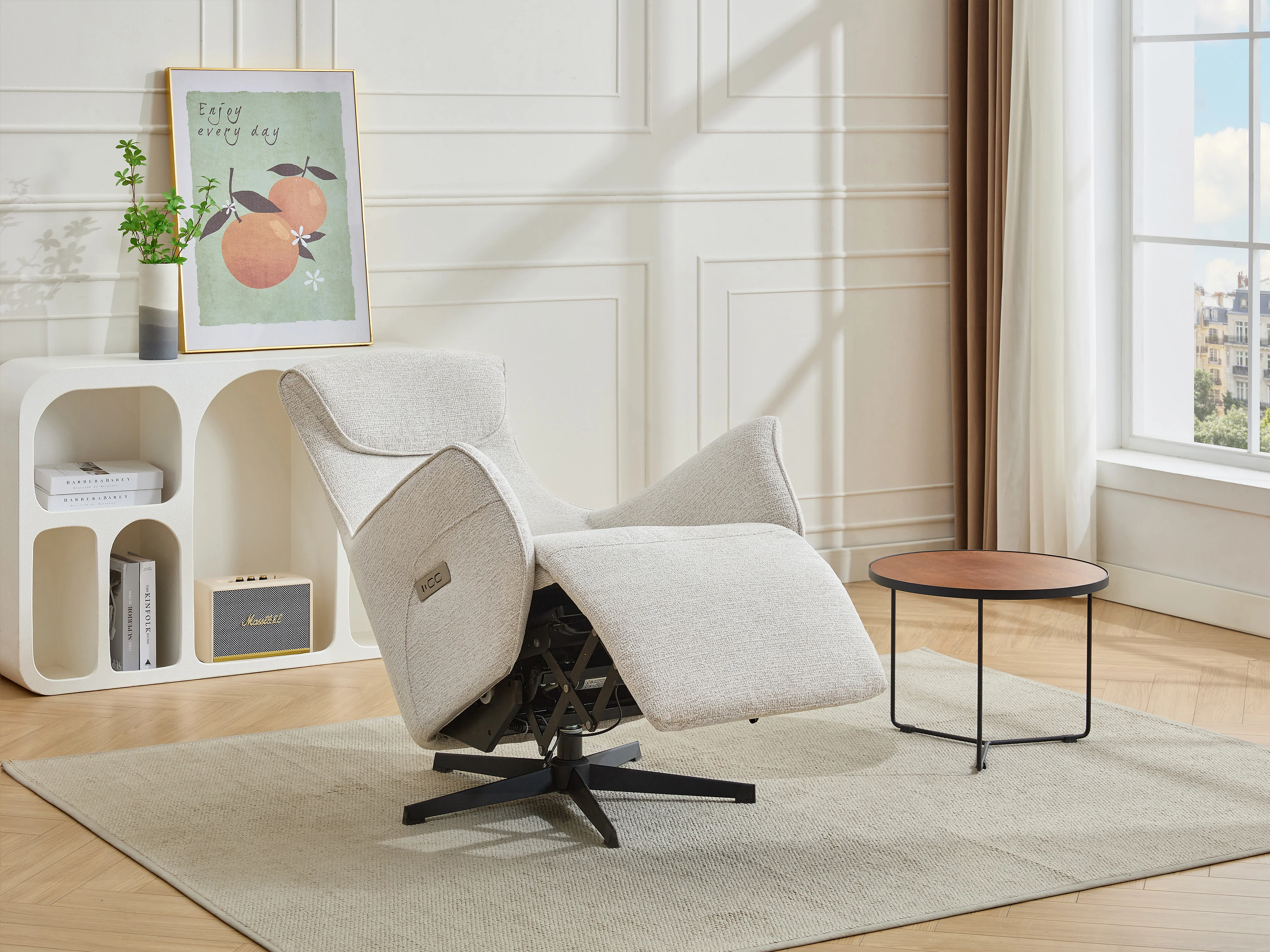 Fauteuil relax électrique en tissu texturé beige TASEMO
