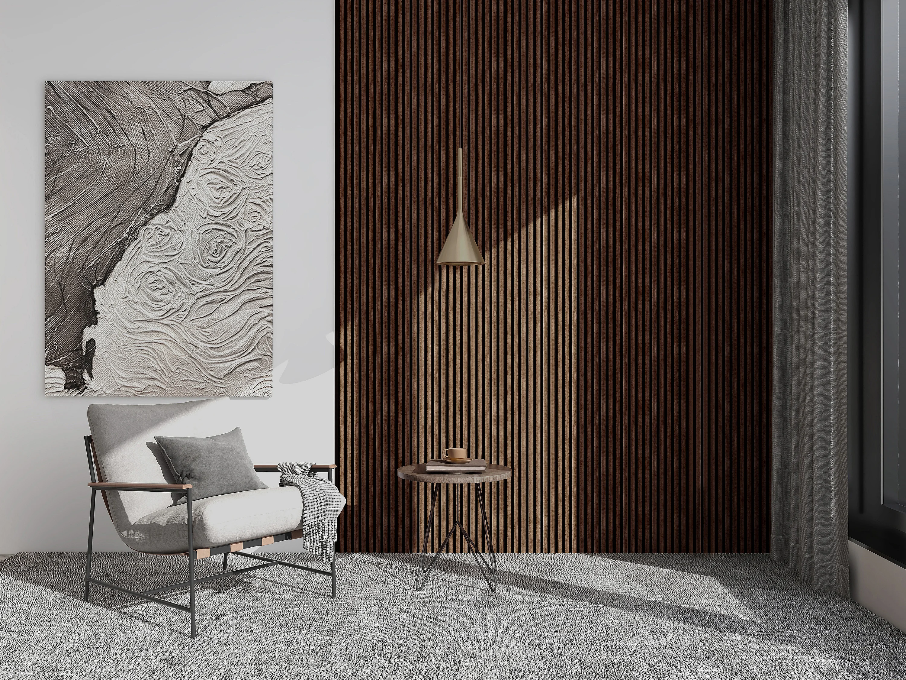 Panneau mural 3D - Pack de 3,71 m² - Coloris bois naturel foncé et noir - Lot de 8 pièces - TATIANA