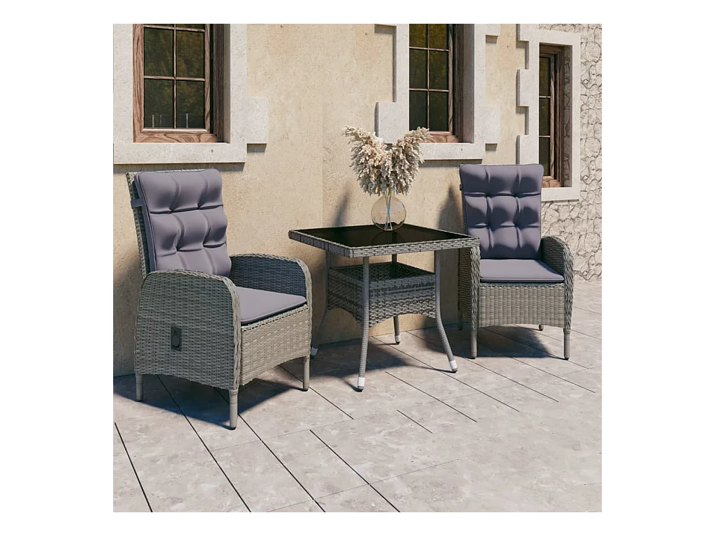 Tatum Ensemble à Manger de jardin 3 pcs Résine tressée et verre Gris