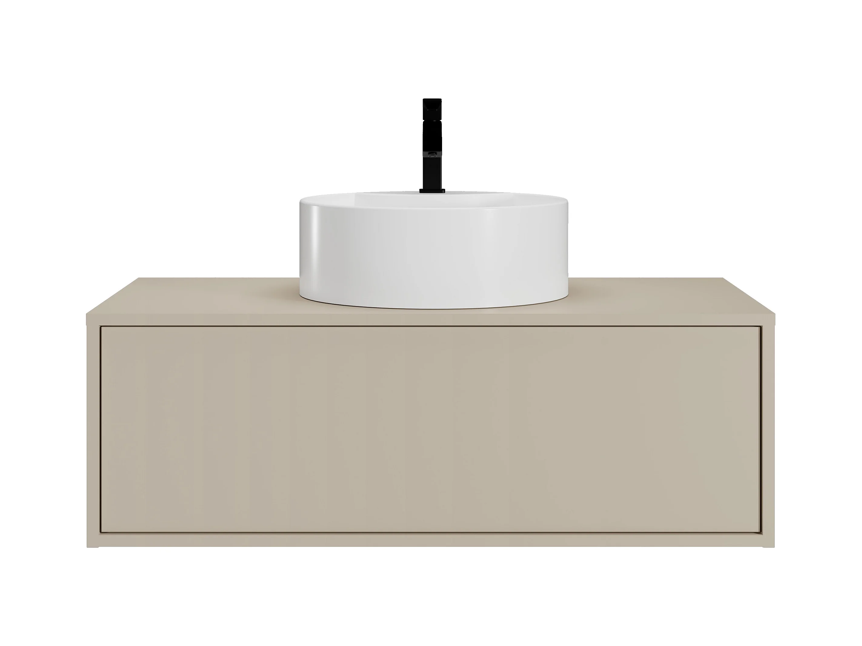 Meuble de salle de bain suspendu beige avec simple vasque ronde - 94 cm - TEANA II