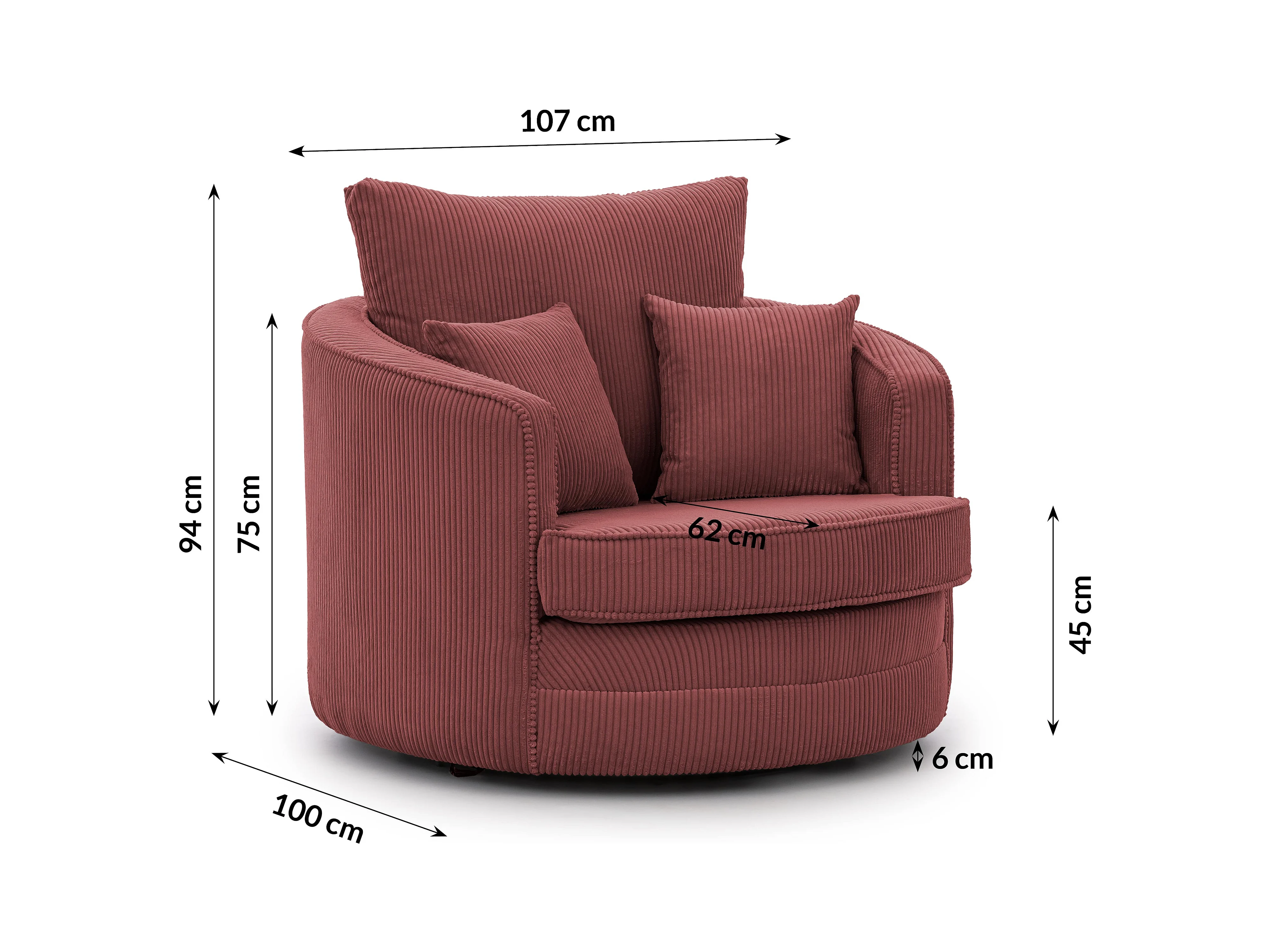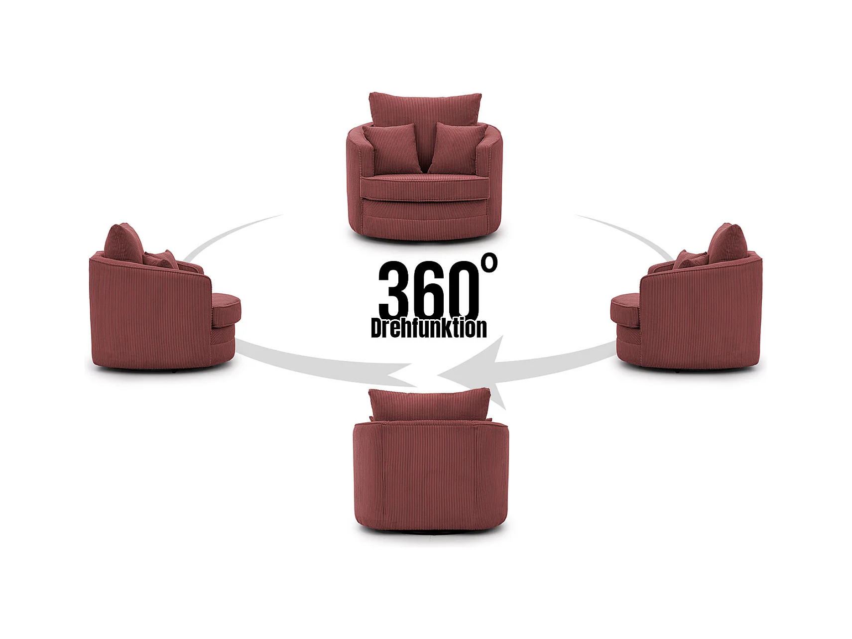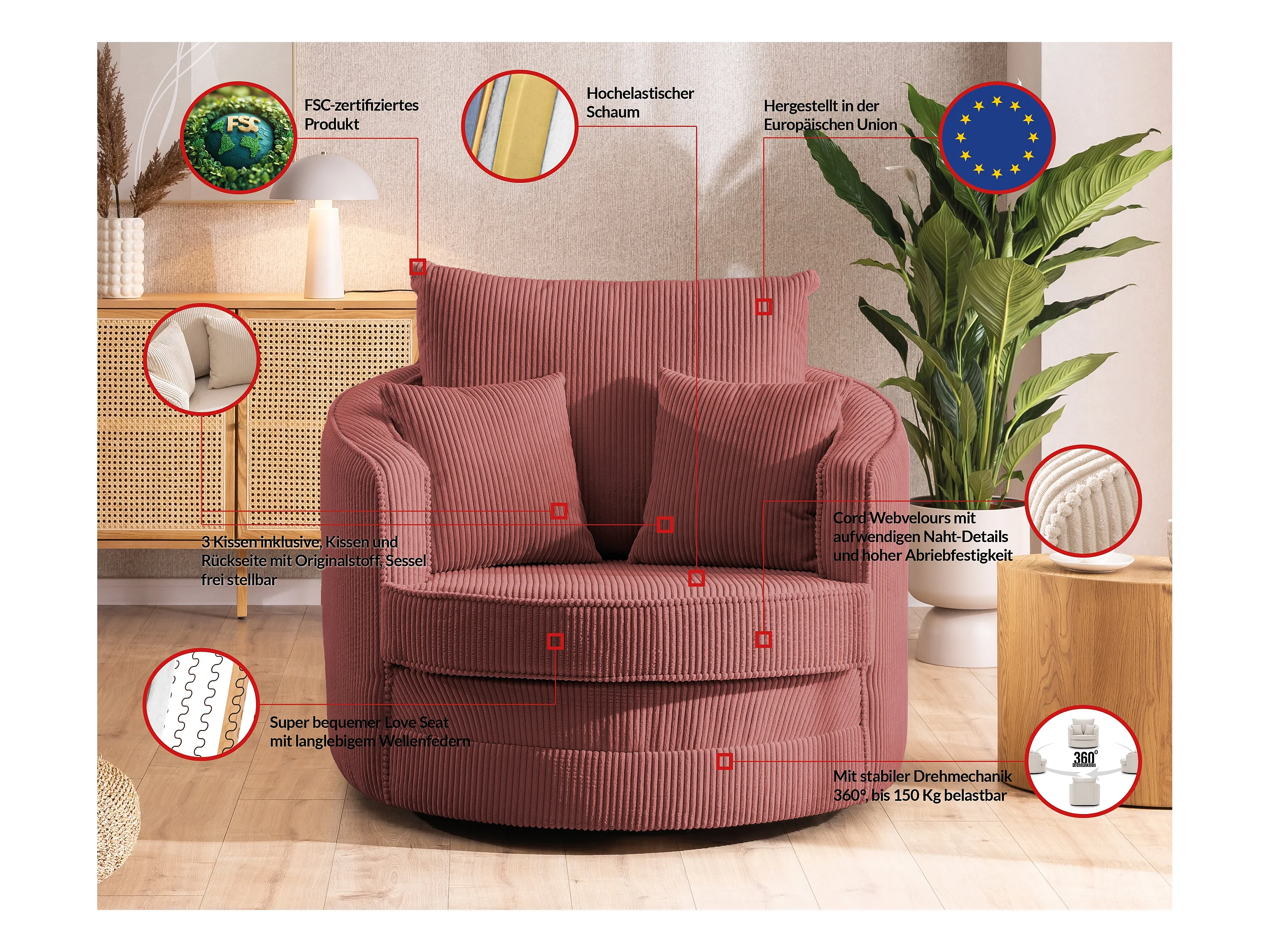 Ted – Fauteuil pivotant Love Seat XXL rotatif à 360 degrés en tissu côtelé terracotta