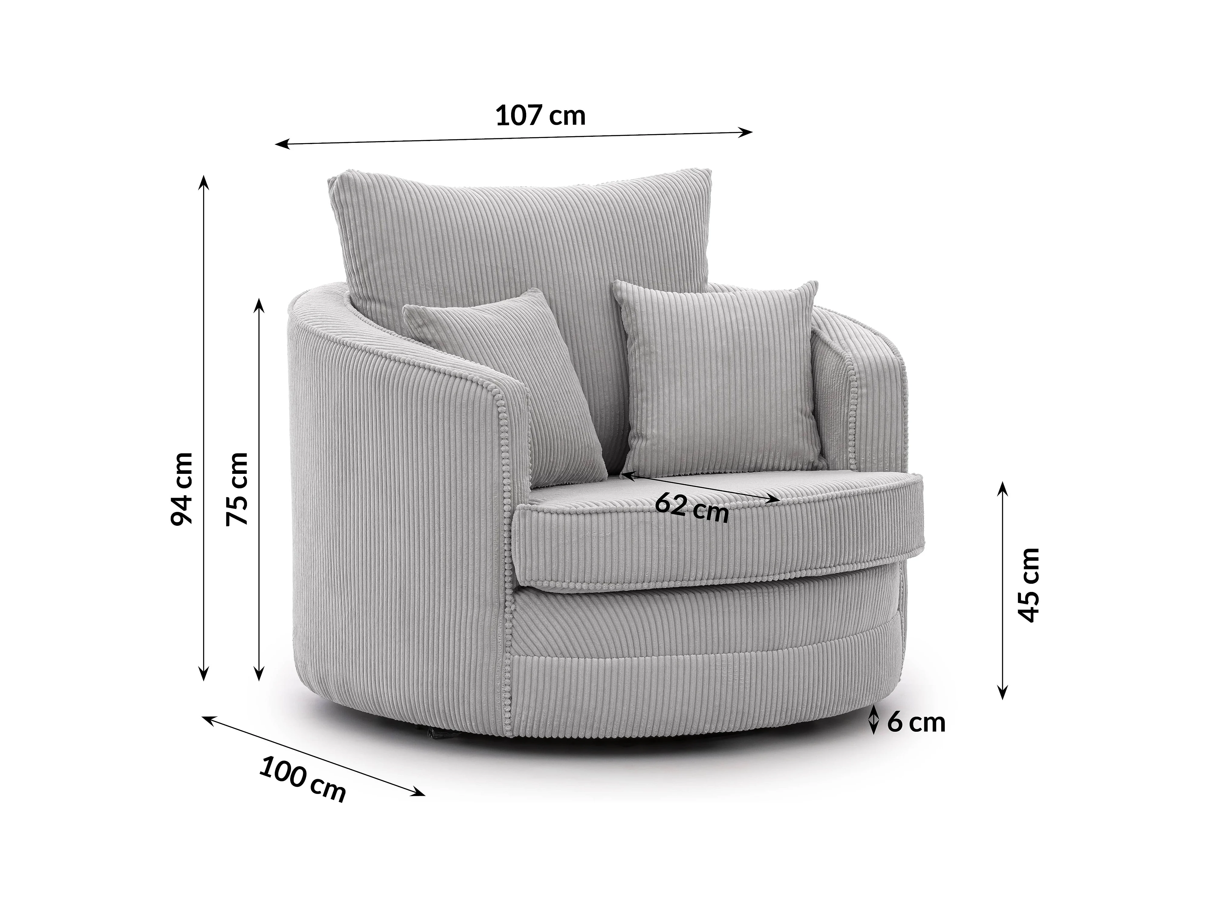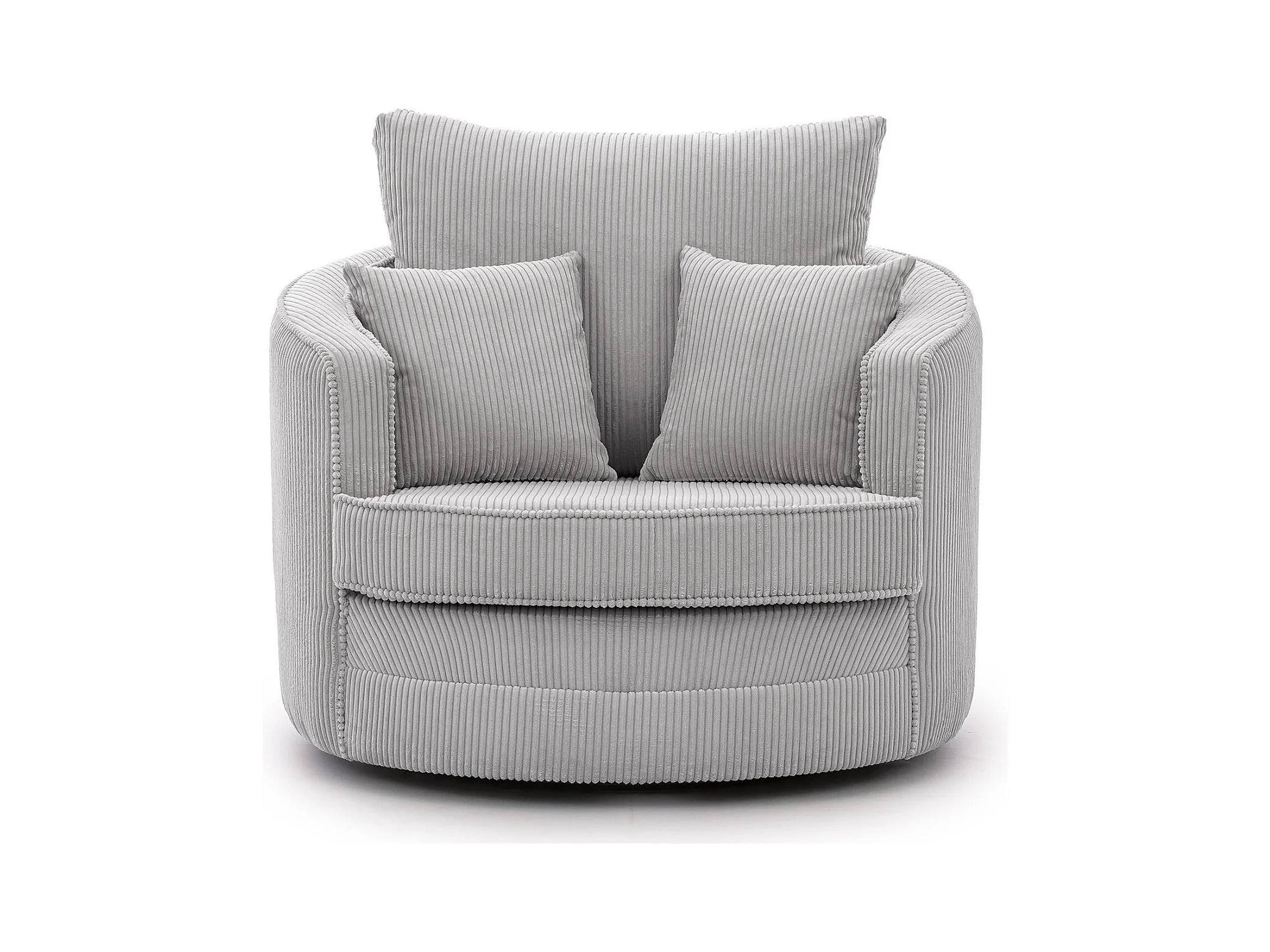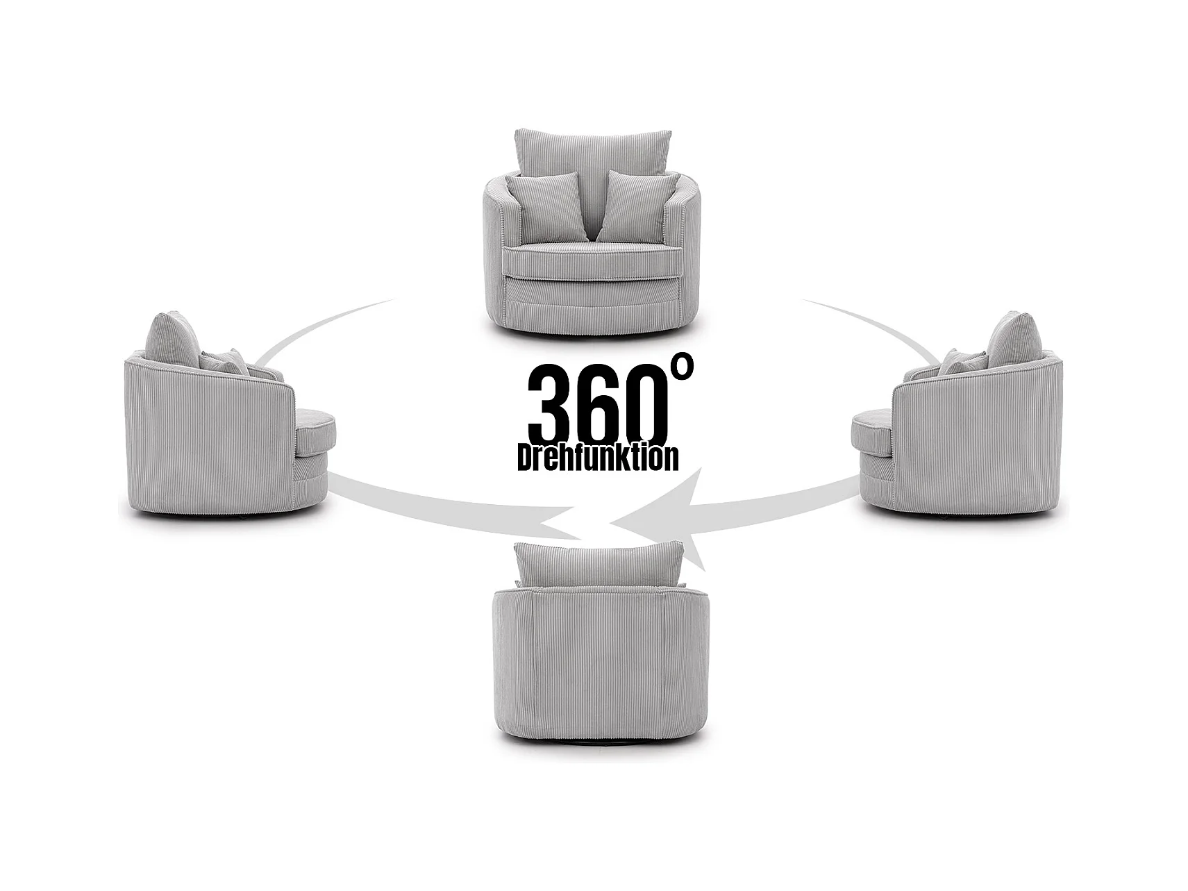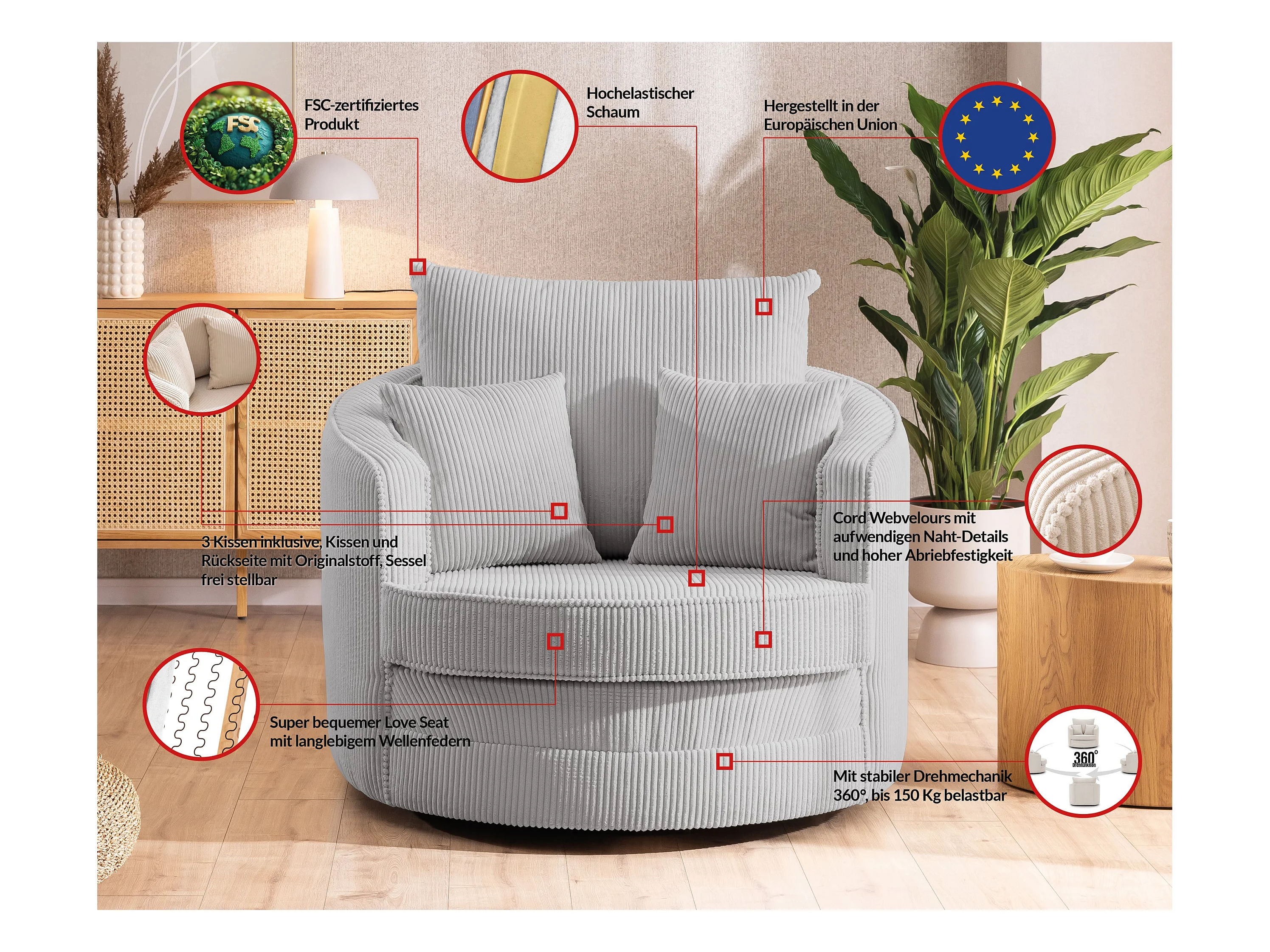 Ted – Fauteuil pivotant Love Seat XXL rotatif à 360° en tissu côtelé gris clair