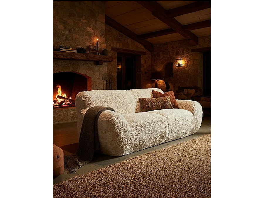 Teddy - Canapé 2 places en tissu fourrure imitation mouton
