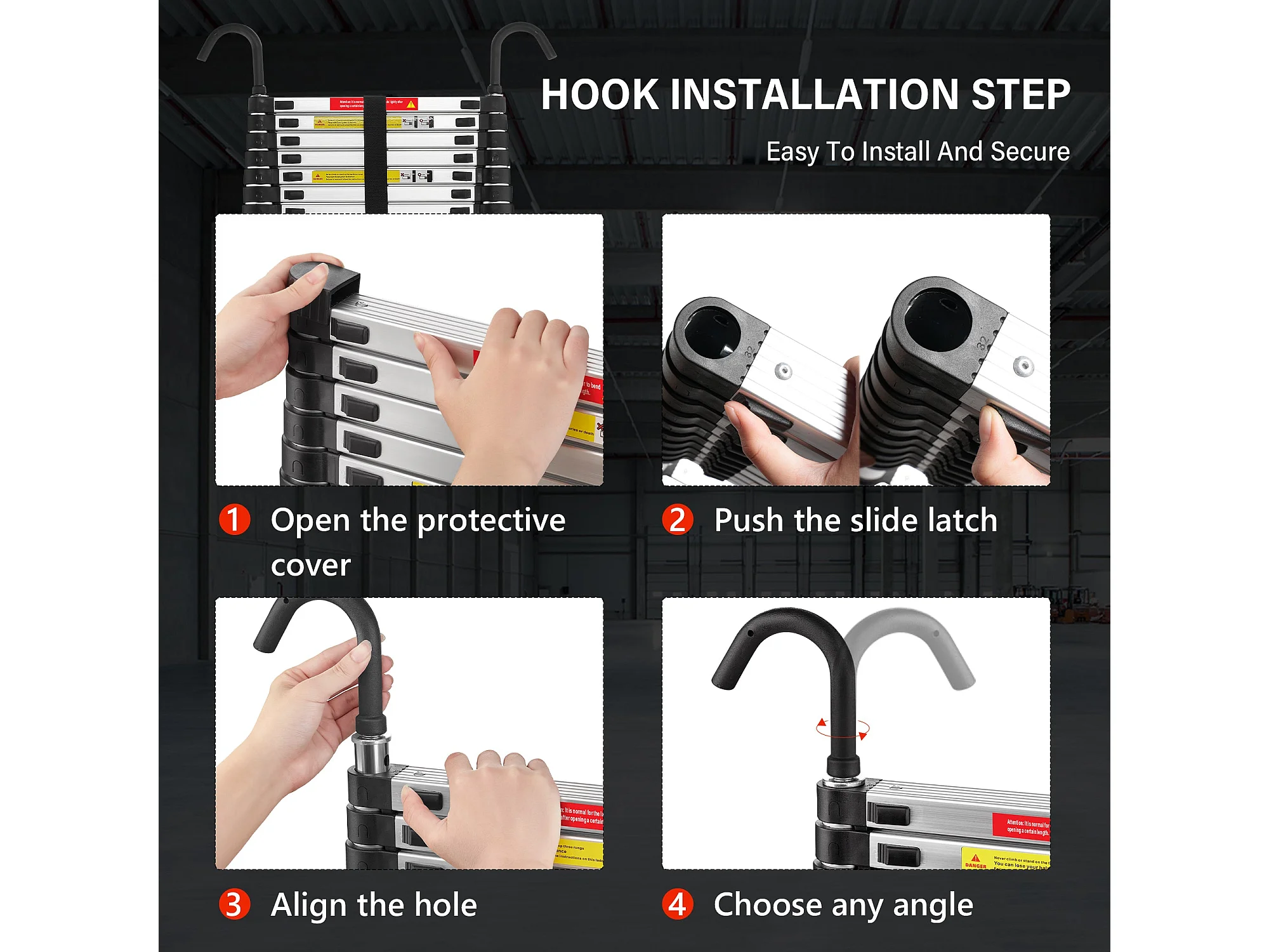 Échelle télescopique pliante DIY en aluminium de 6,2 m avec crochets, charge max. 150 kg, robuste