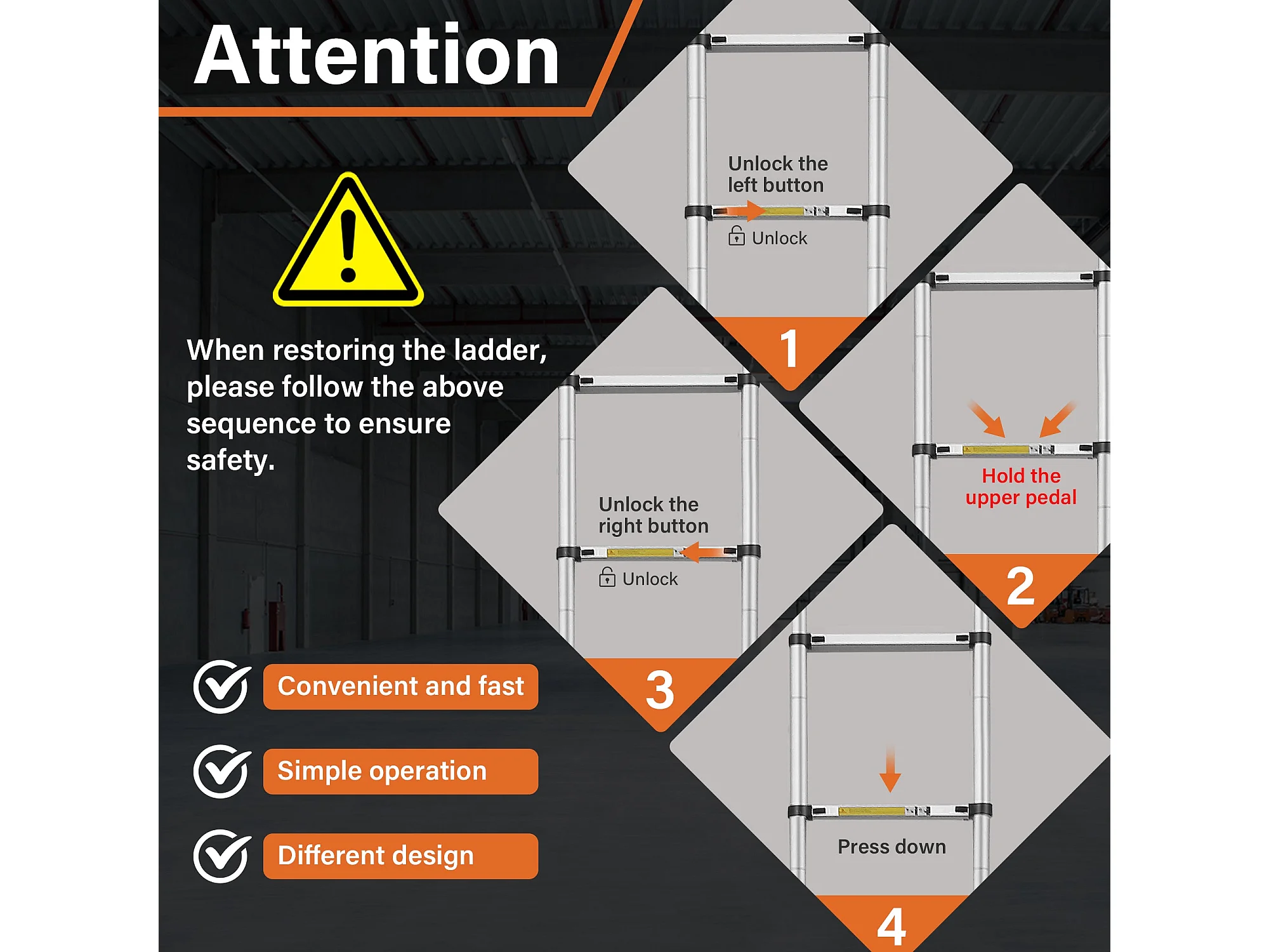 Échelle Télescopique 3,2M en Aluminium Bricolage Pliable, Charge Maximale 150kg