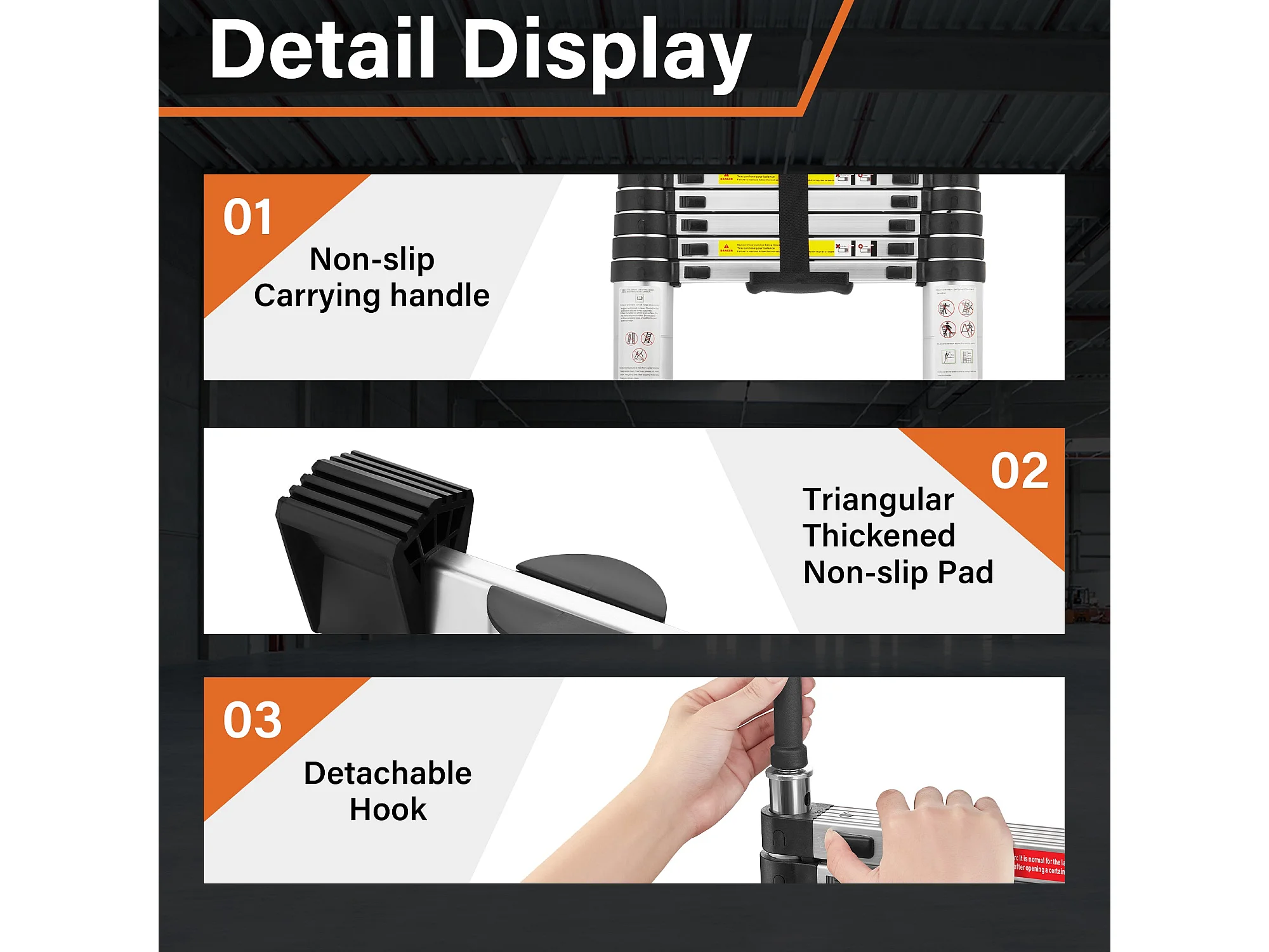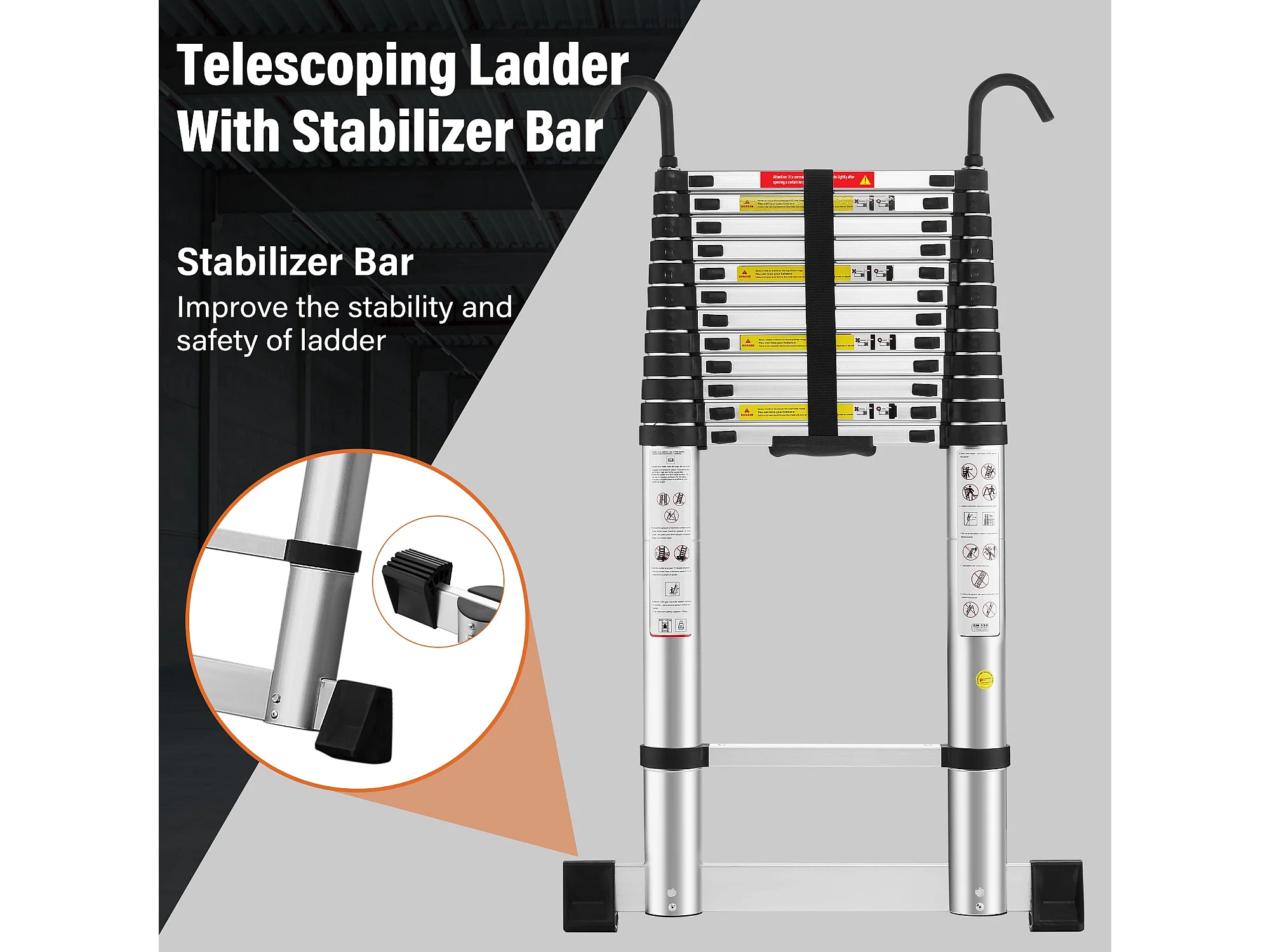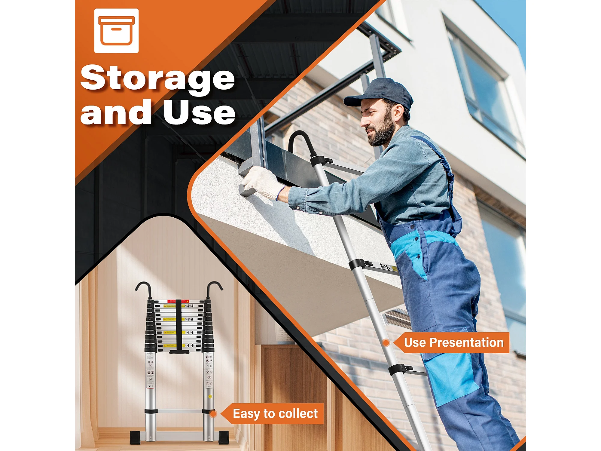 Échelle télescopique de 3,8 m en Aluminium - Droite Multi-Fonction Ladder - 13 barreaux - avec Pieds Antidérapants - Charge Max 150kg