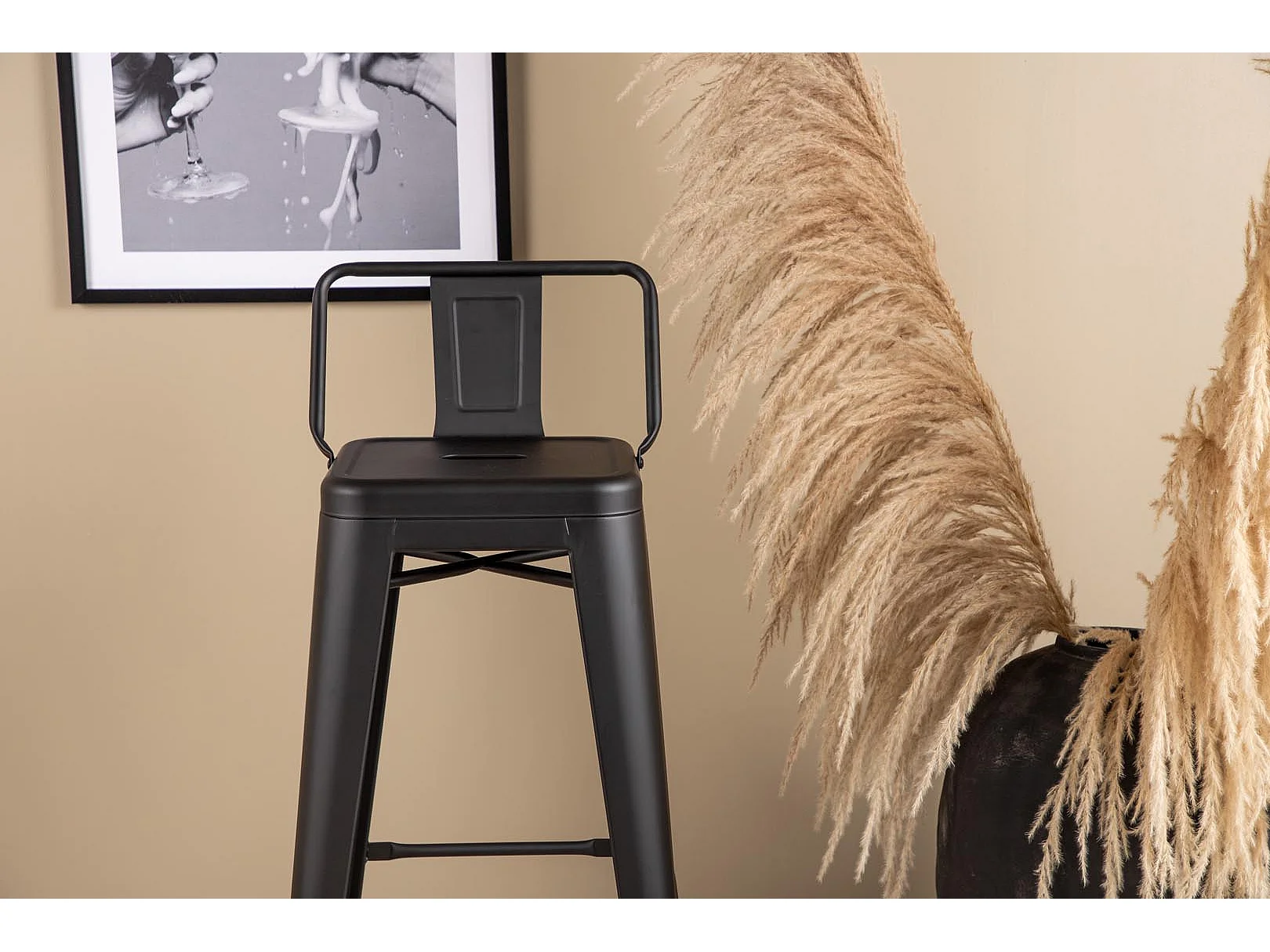 Tempe Flat tabouret de bar avec dossier, métal noir.