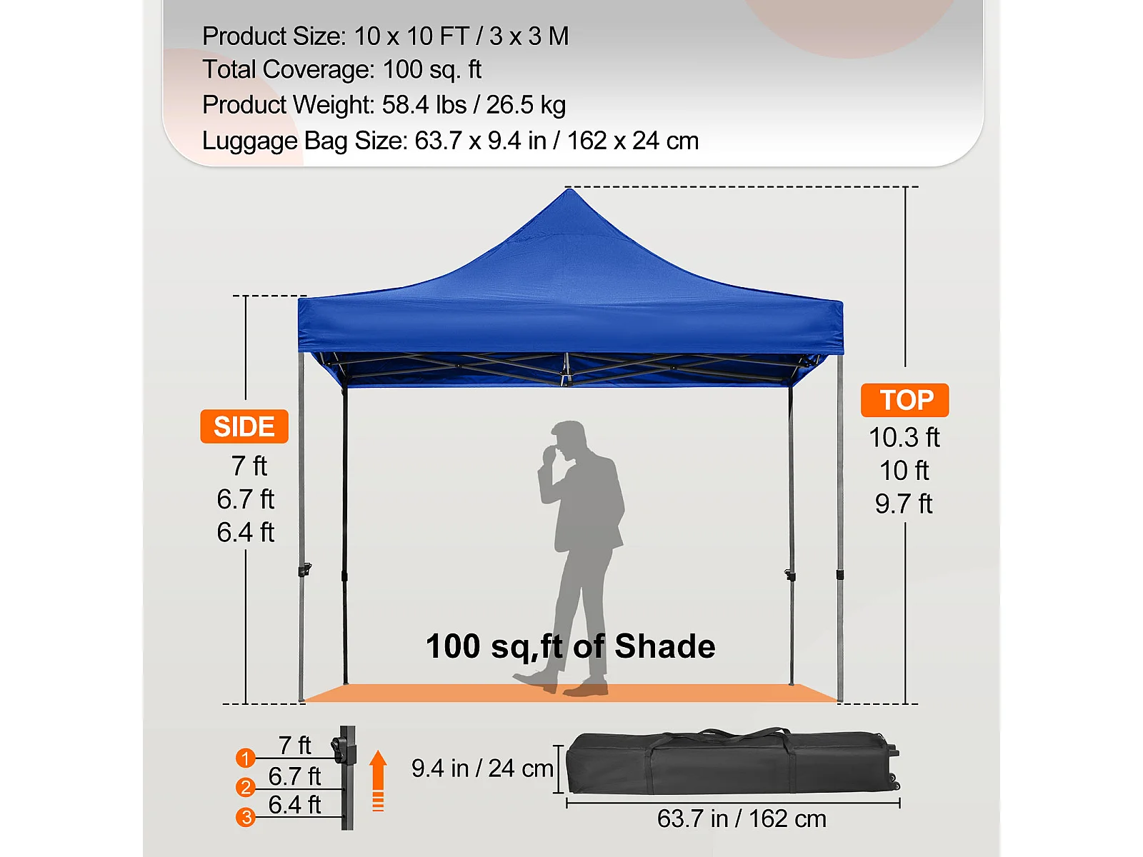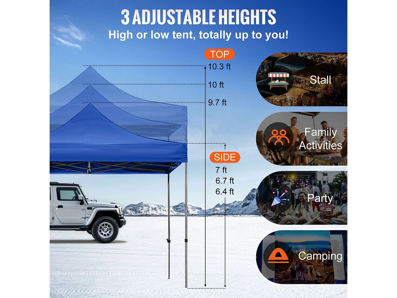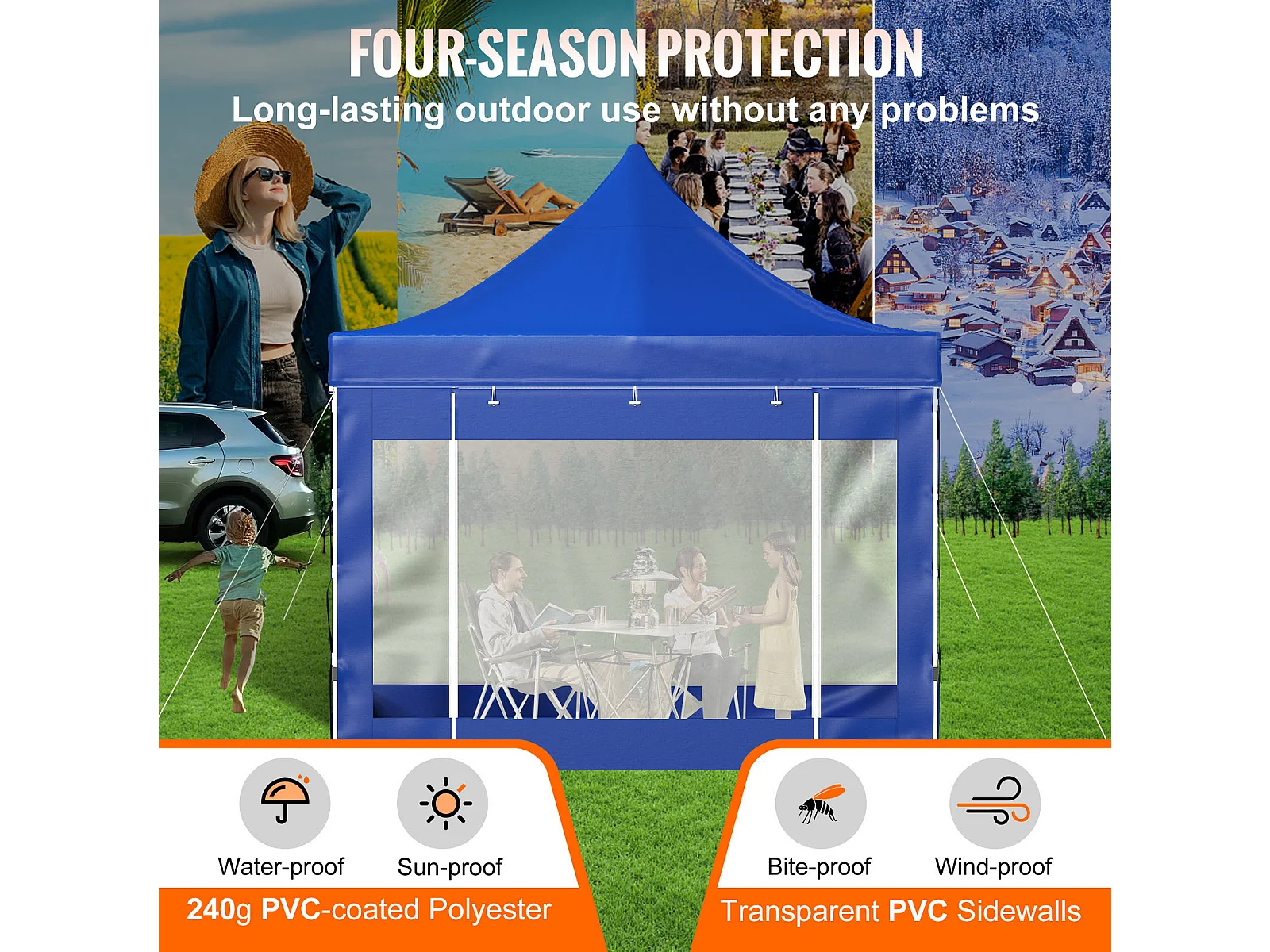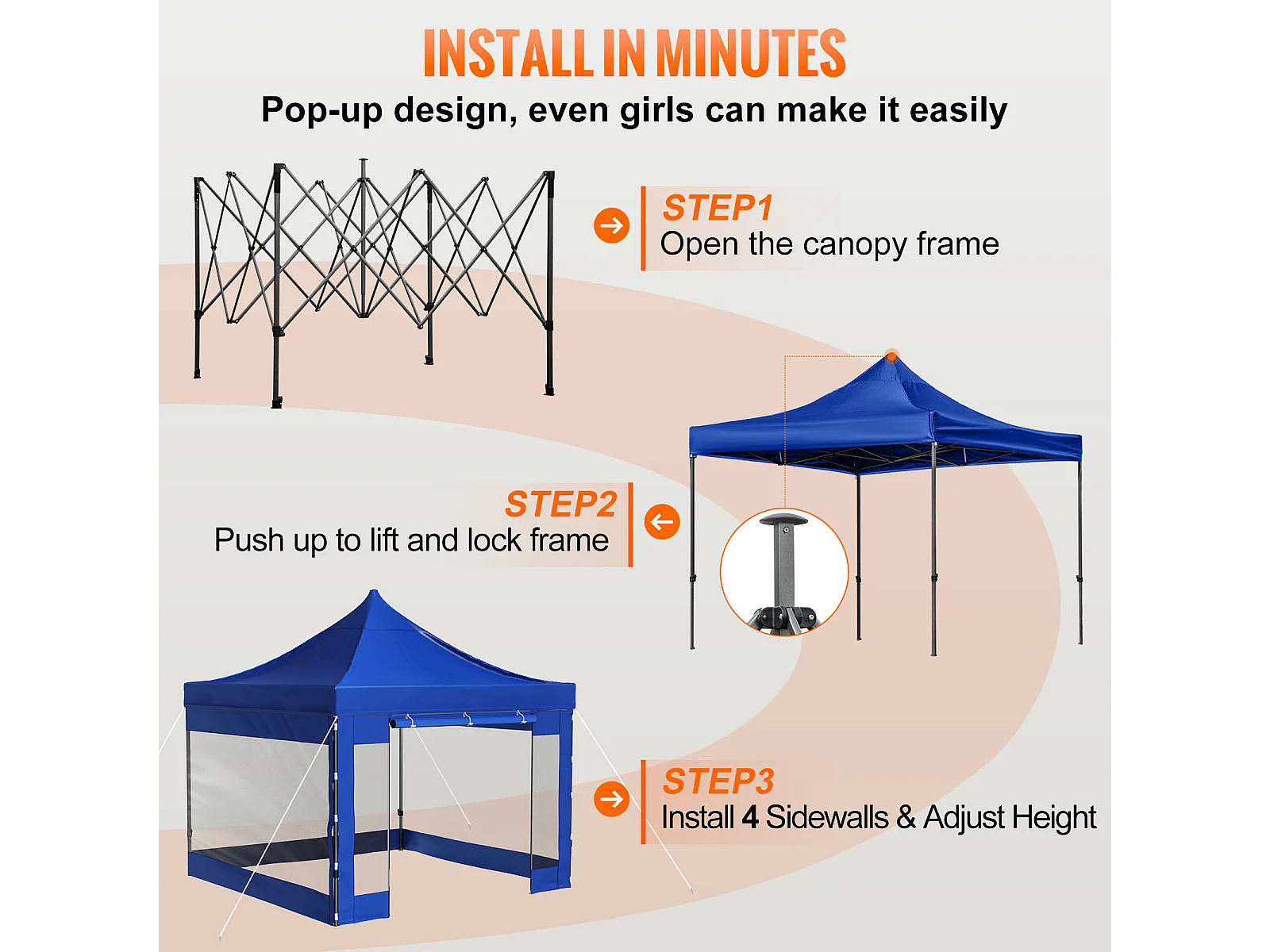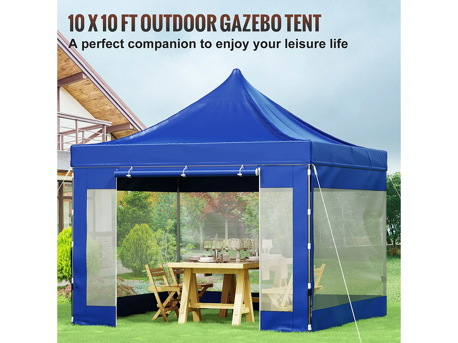 Tente à Baldaquin SucceBuy Escamotable, 305 x 305 cm, Belvédère Extérieur avec Parois Latérales, Bleu