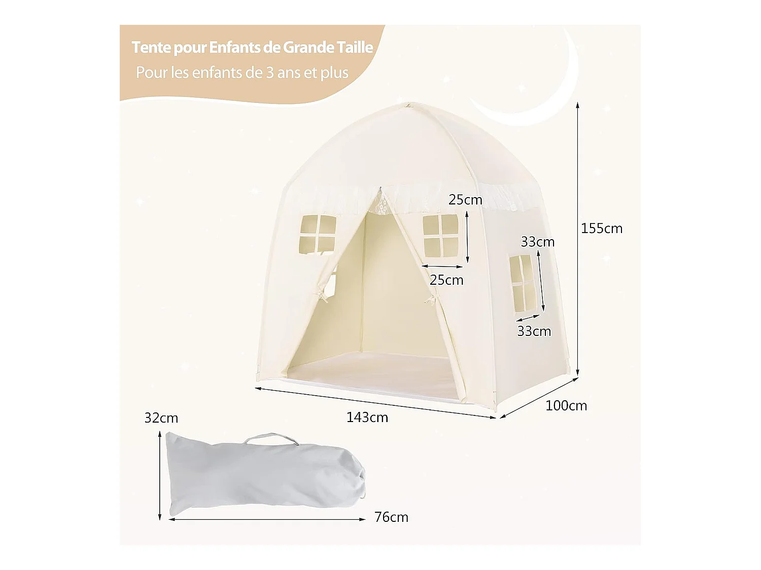 Tente de jeu pour enfants avec tapis antidérapant et sac de transport grande maisonr enfants 3 ans +