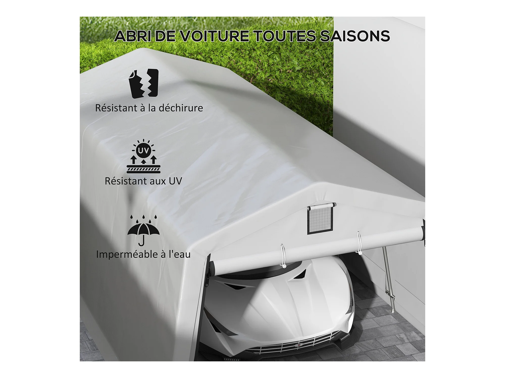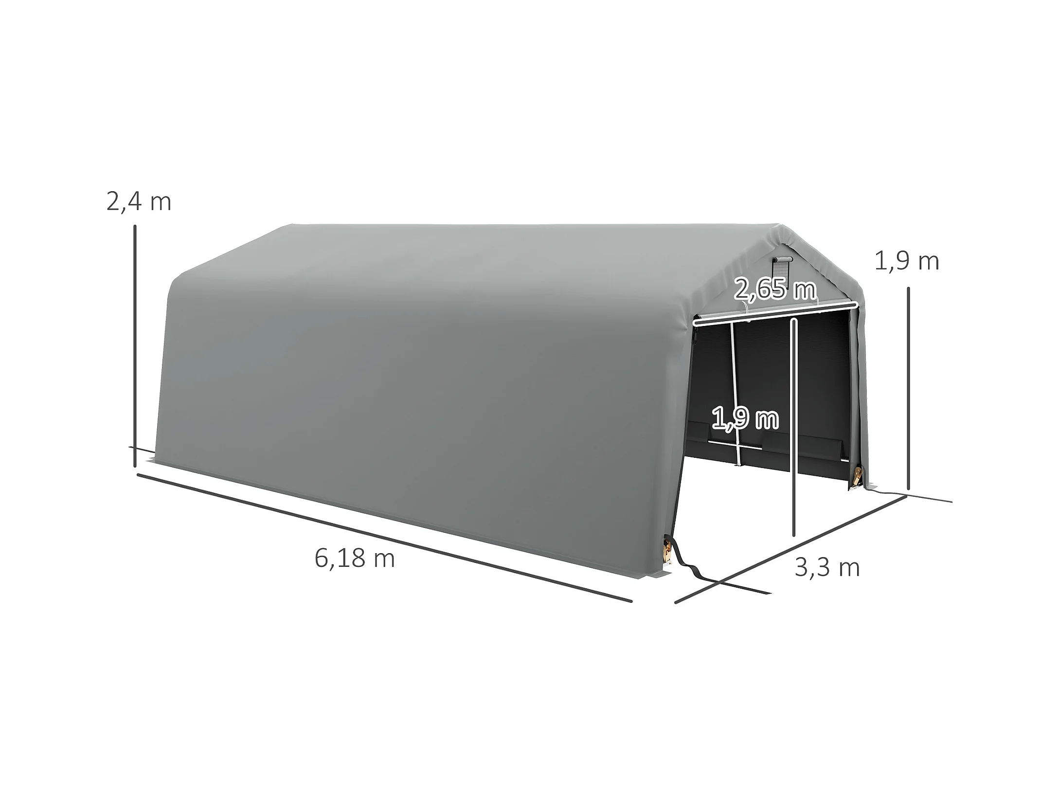 Tente garage carport dim 6L x 3,3l x 2,4H m acier galvanisé robuste PE haute densité 150 g/m² imperméable anti-UV gris