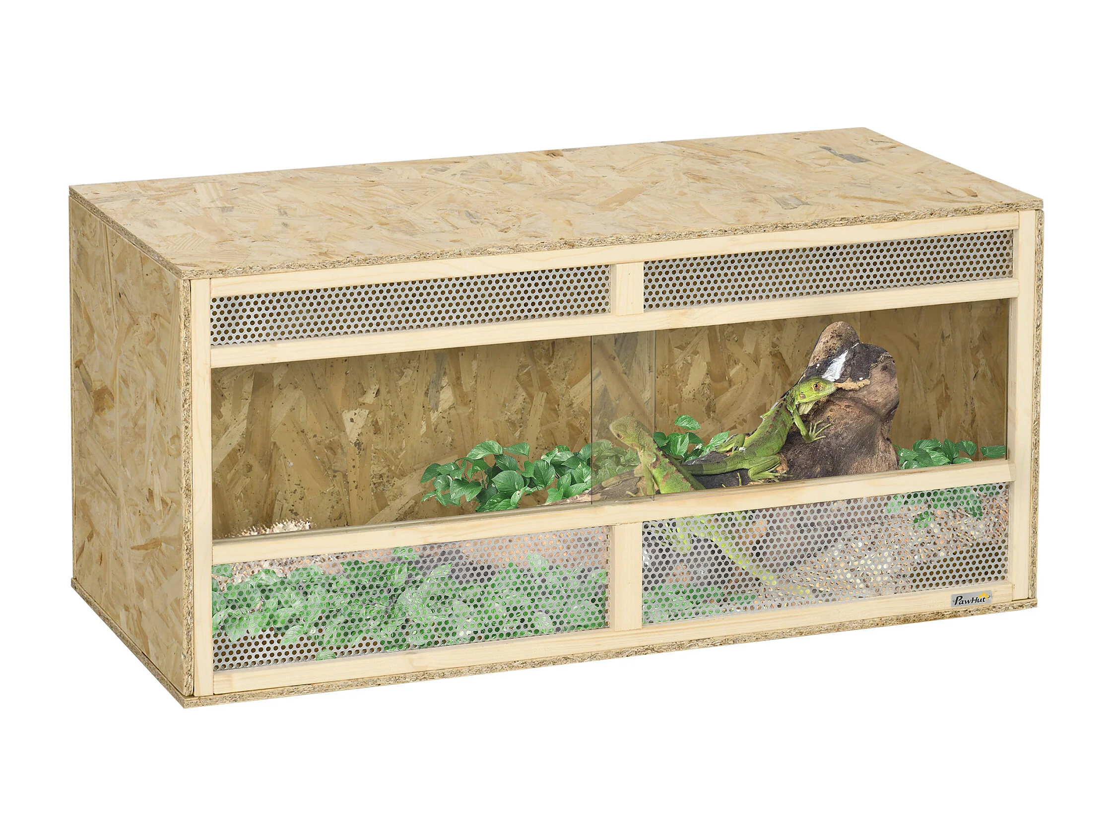 Vivarium Reptiles, SucceBuy Habitat pour Tortues 112 x 65,6 x 61 cm, Maison pour Tortues Intérieure/Extérieure en Bois 3 Pièces