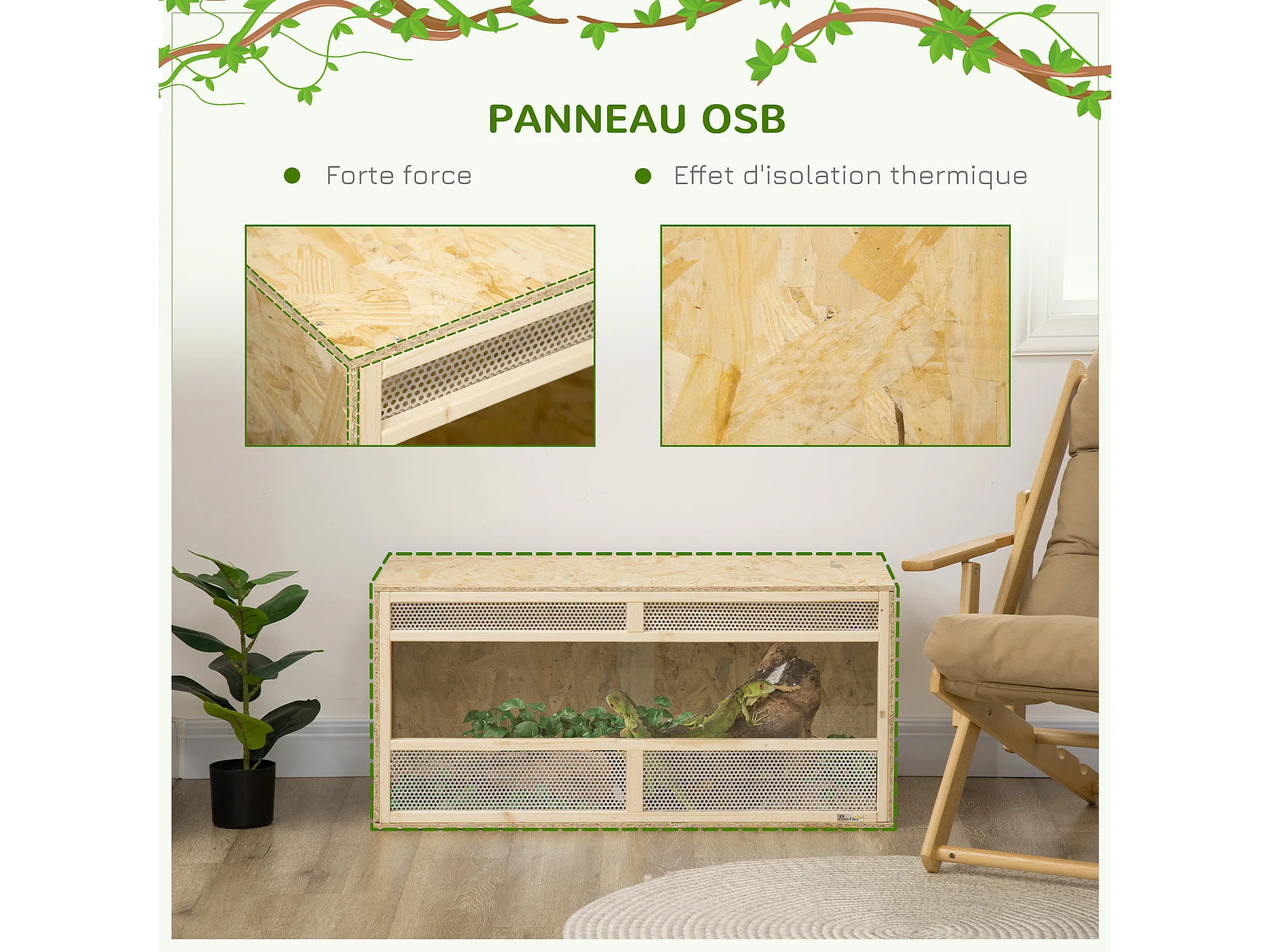 Terrarium - vivarium reptiles & batraciens - 2 portes coulissantes verre trempé - parois frontales maillées - OSB métal