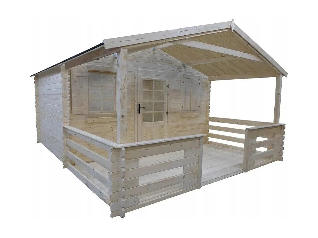 Terrasse en bois avec balustrade pour abri en bois - 8m2 - 4m x 2m - couleur: naturel - DOM18 - ALTANKA