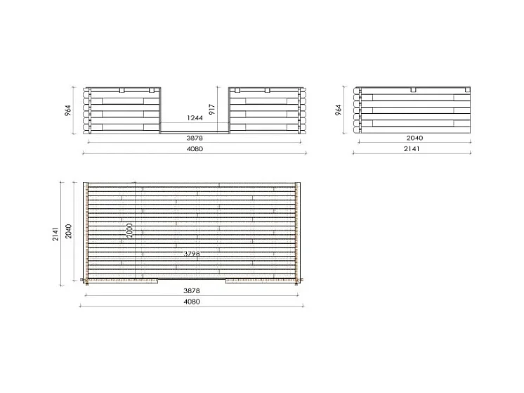 Terrasse en bois avec balustrade pour abri en bois - 8m2 - 4m x 2m - couleur: naturel - DOM545 - ALTANKA