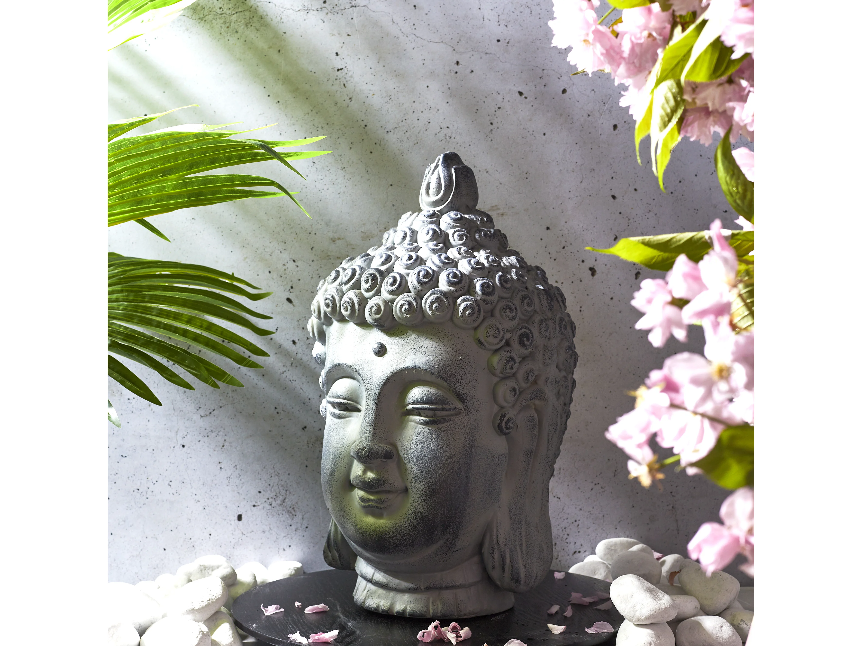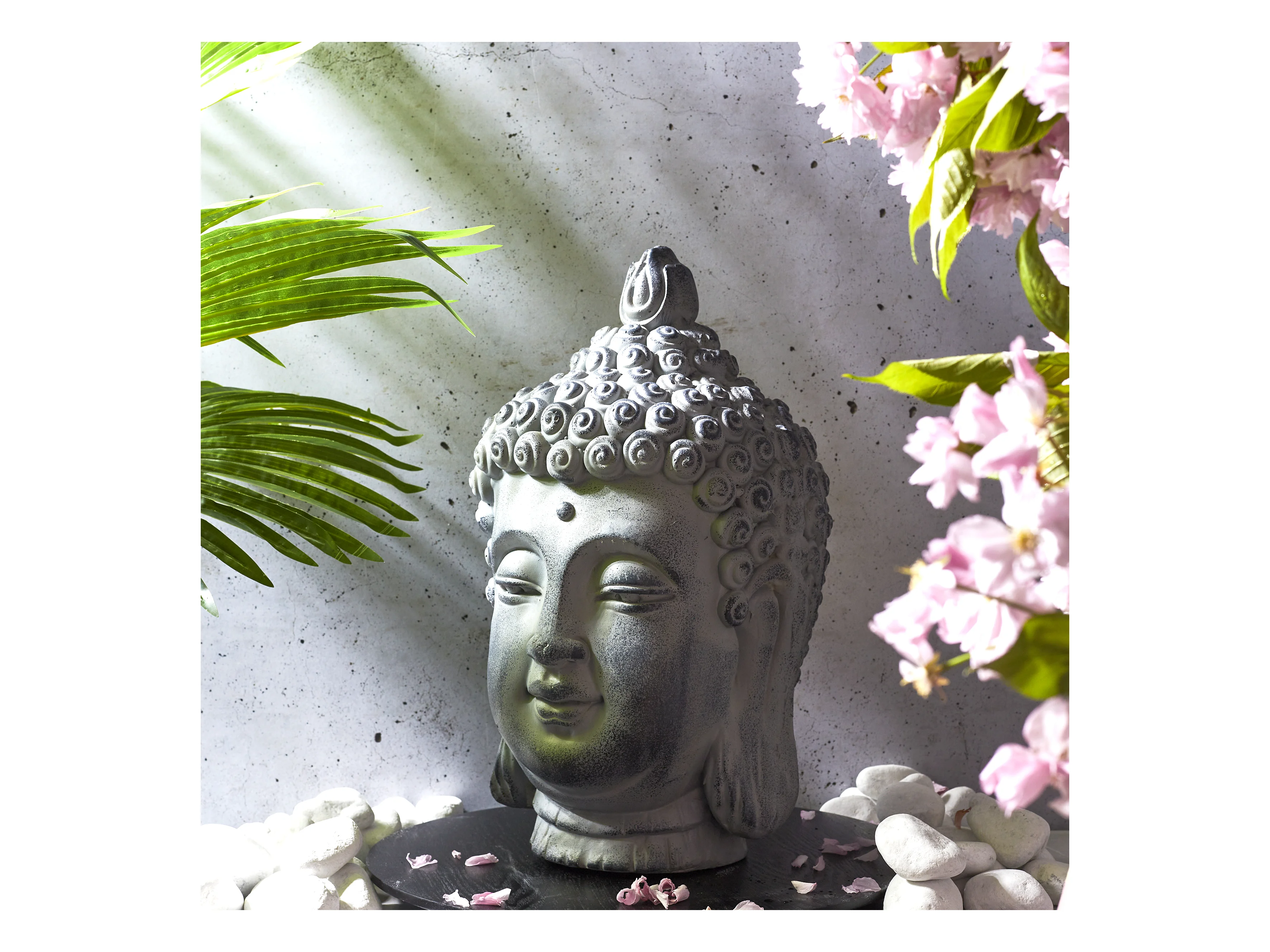 Tête de bouddha en fibres pour jardin 31 x 30 x 42 cm