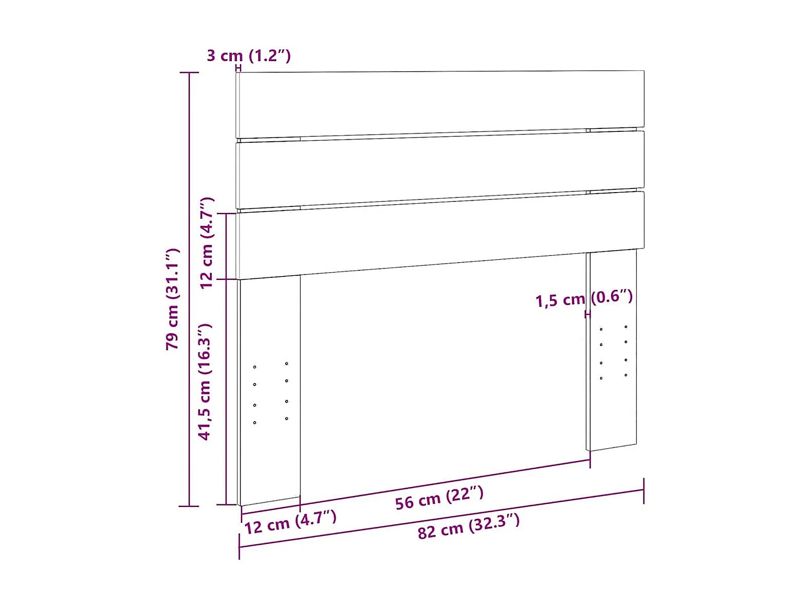 Tête de lit 80 cm bois massif de chêne