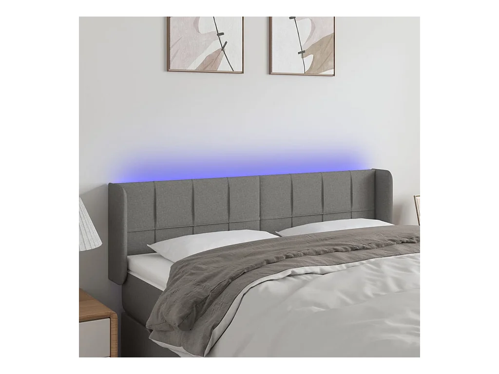 Tête de lit à LED Gris foncé 147x16x78-88 Tissu