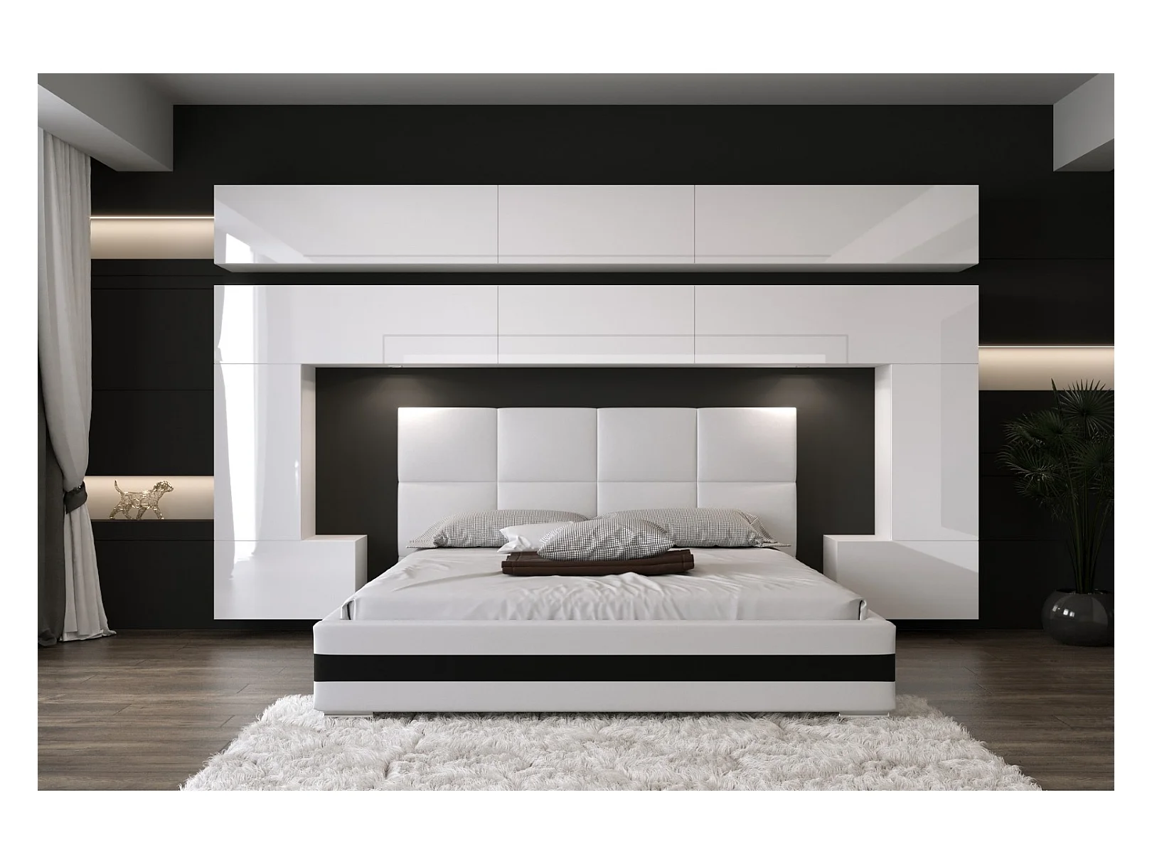 Tête de lit avec rangement Armoire - pont de lit PANAMA 5/HG/W/2-1A blanc/blanc brillant 323x214x35cm