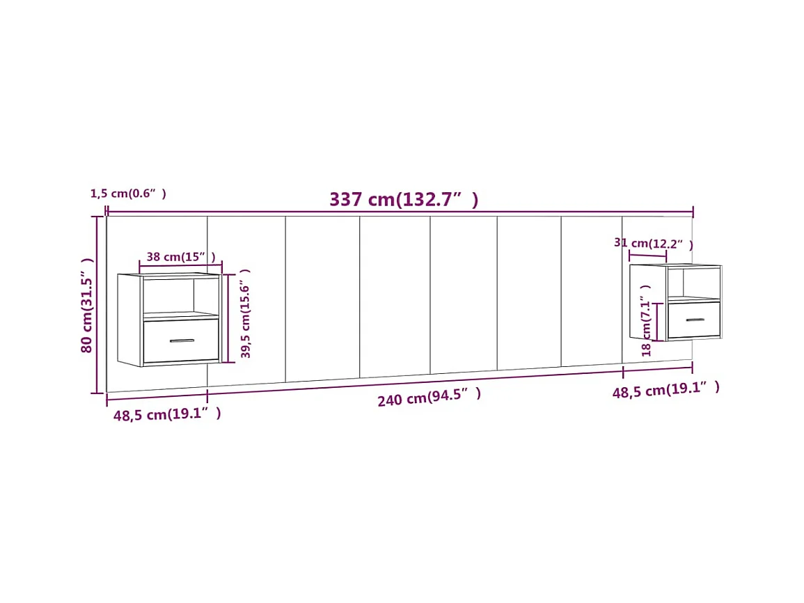 Tête de lit avec armoires Chêne fumé Bois d'ingénierie