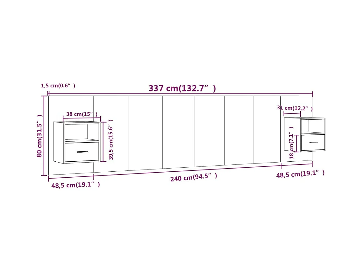 Armoire de tête de lit Chêne sonoma 200x19x103,5 cm POI53270 BonneVie Meuble