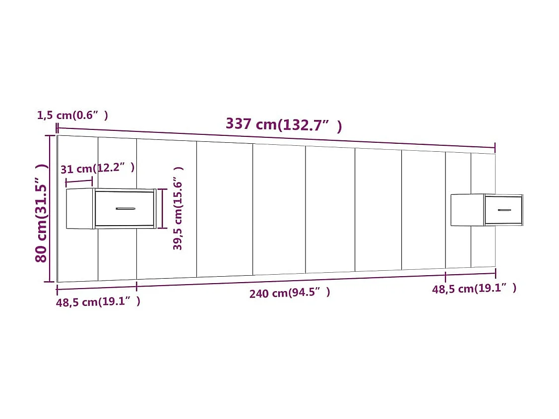 Tête de lit avec armoires Gris sonoma Bois d'ingénierie