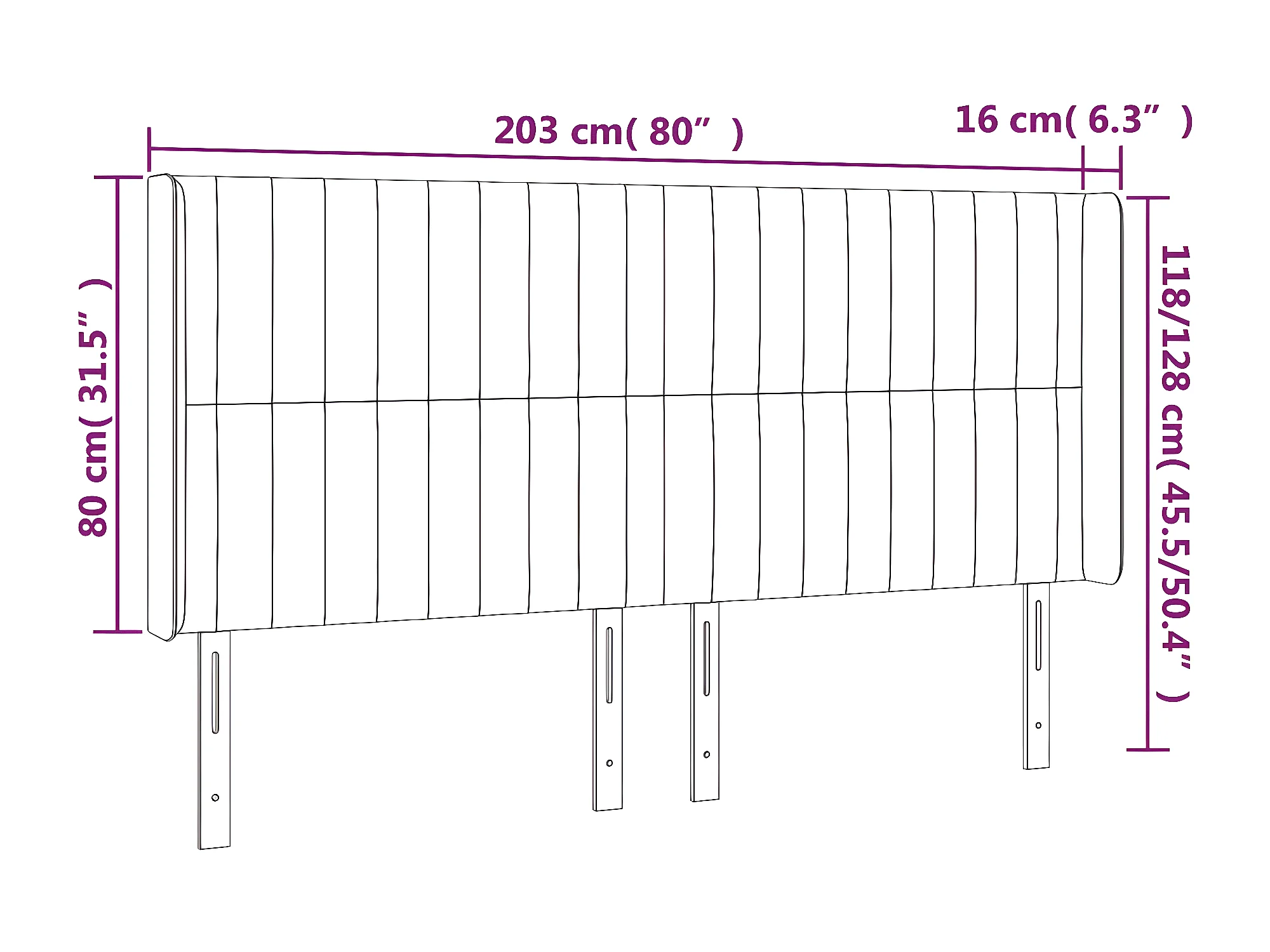 Tête de lit avec oreilles Bleu foncé 203x16x118/128 cm Velours