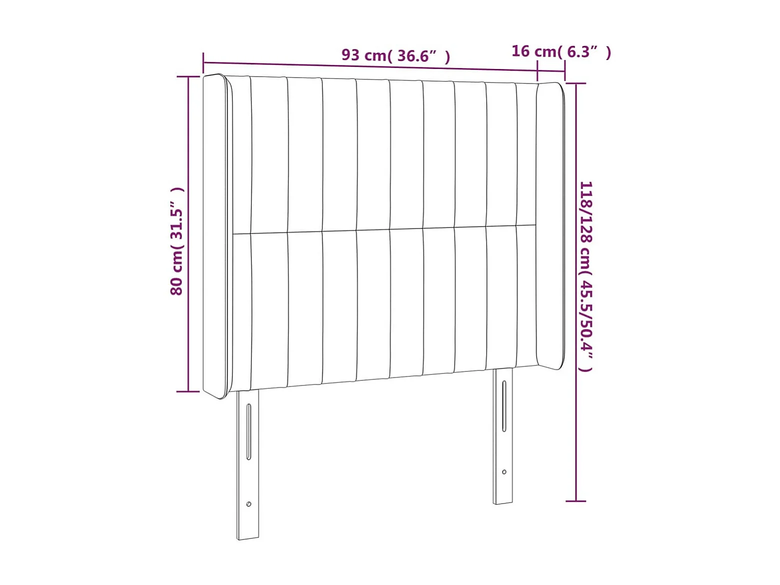 Tête de lit avec oreilles Marron foncé 93x16x118/128 cm Tissu