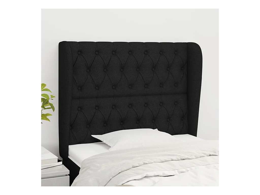 Tête de lit avec oreilles Noir 93x23x78/88 cm Tissu POI74534 BonneVie Meuble