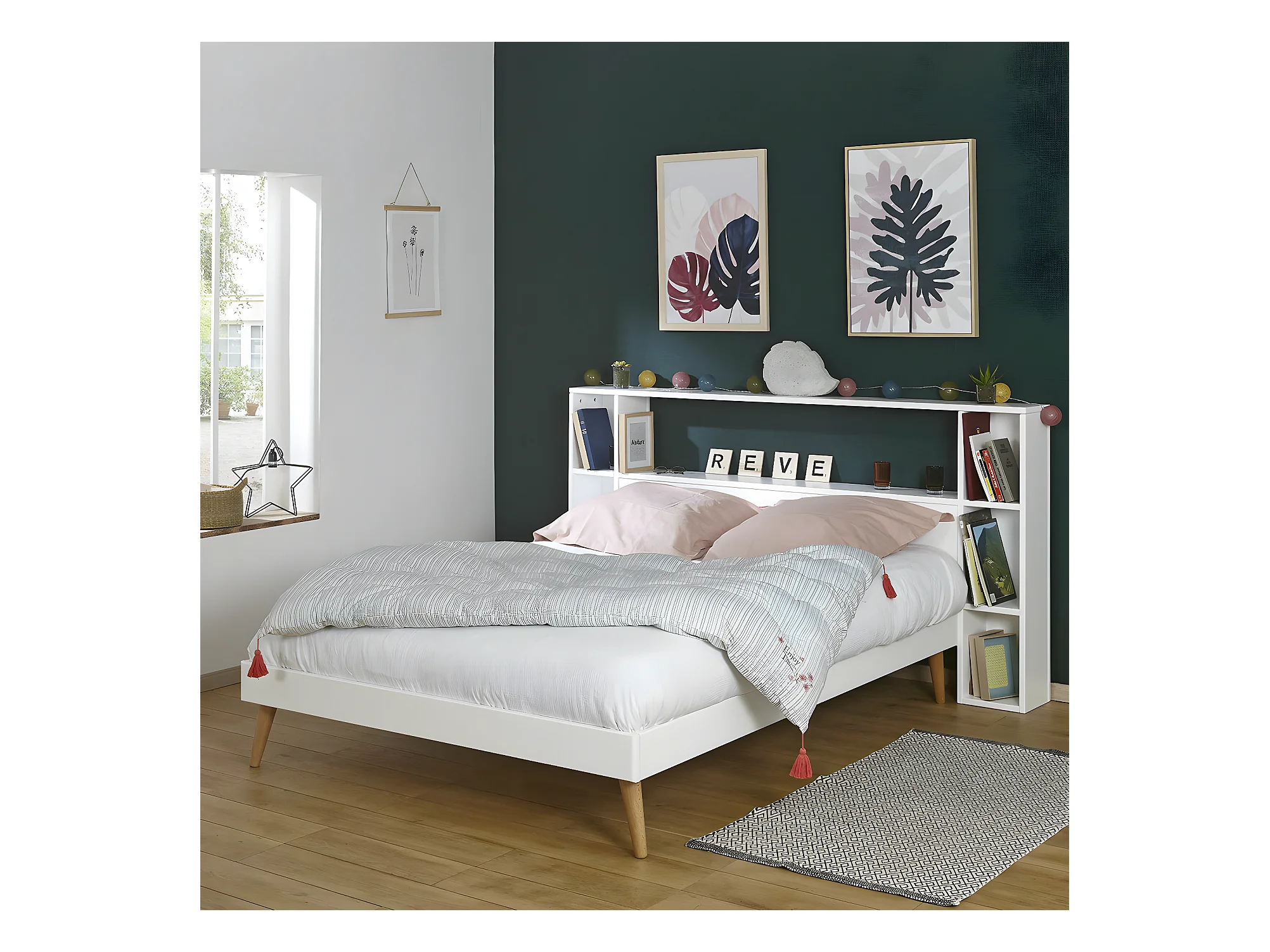 Tête de lit avec rangements 120 cm bois massif bois naturel LOU