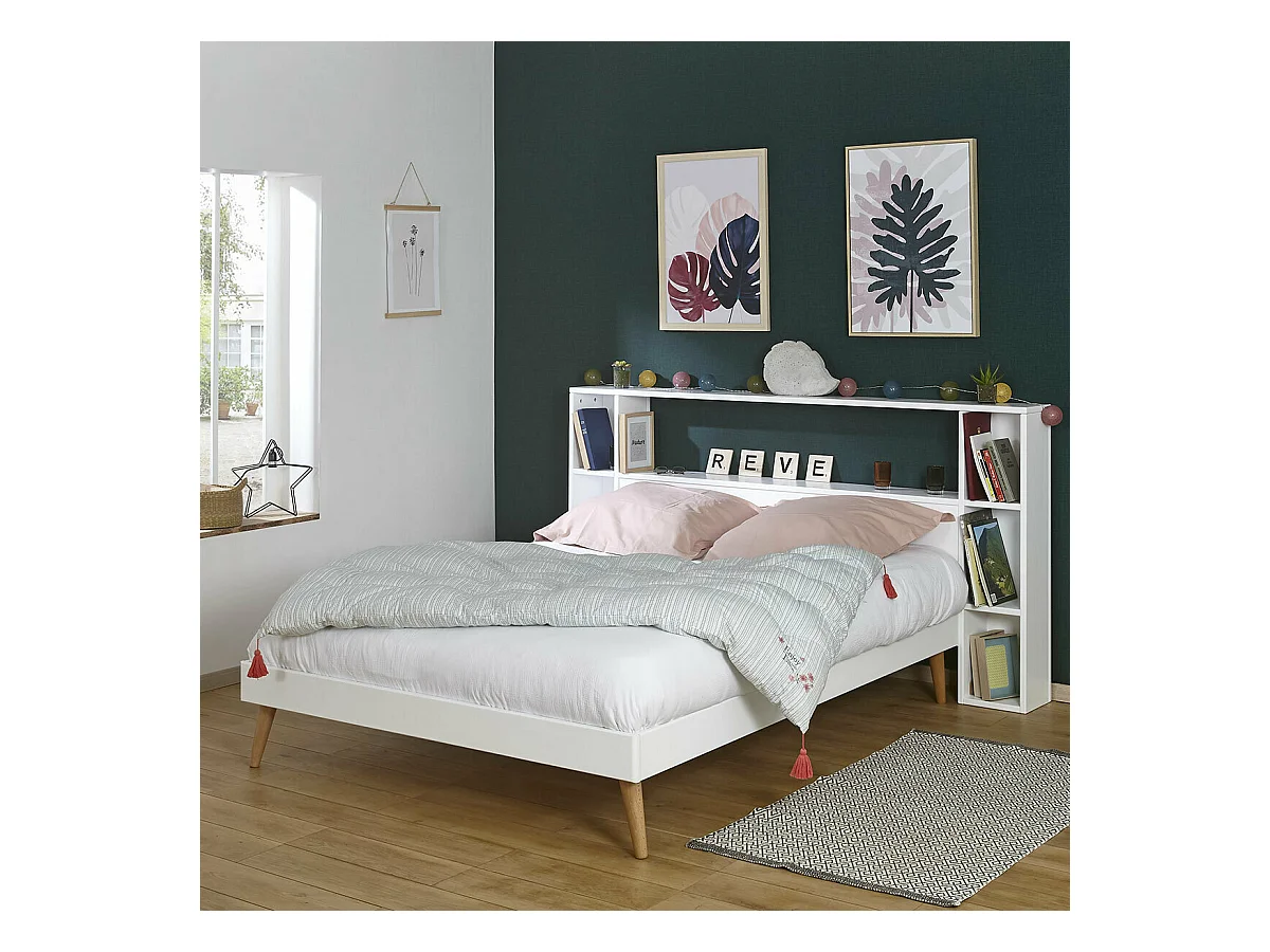 Tête de lit avec rangements 160 cm bois massif blanc LOU