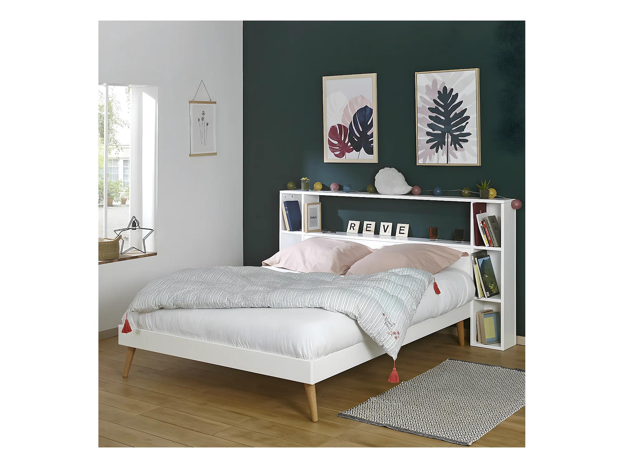 Tête de lit avec rangements 140 cm bois massif bois naturel LOU
