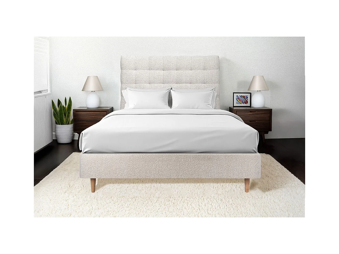 Tete de lit Capitonnée Bouclette Beige L 140 cm - Ep 10 cm rembourré