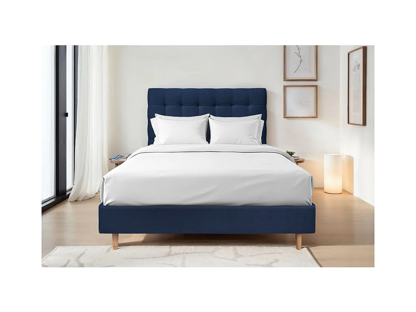 Tete de lit Capitonnée Velours Bleu L 160 cm - Ep 10 cm rembourré