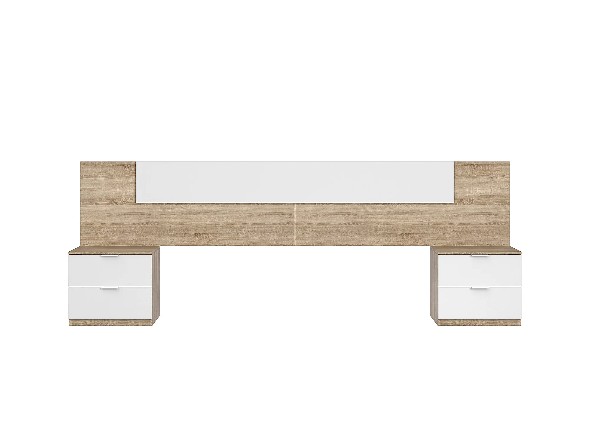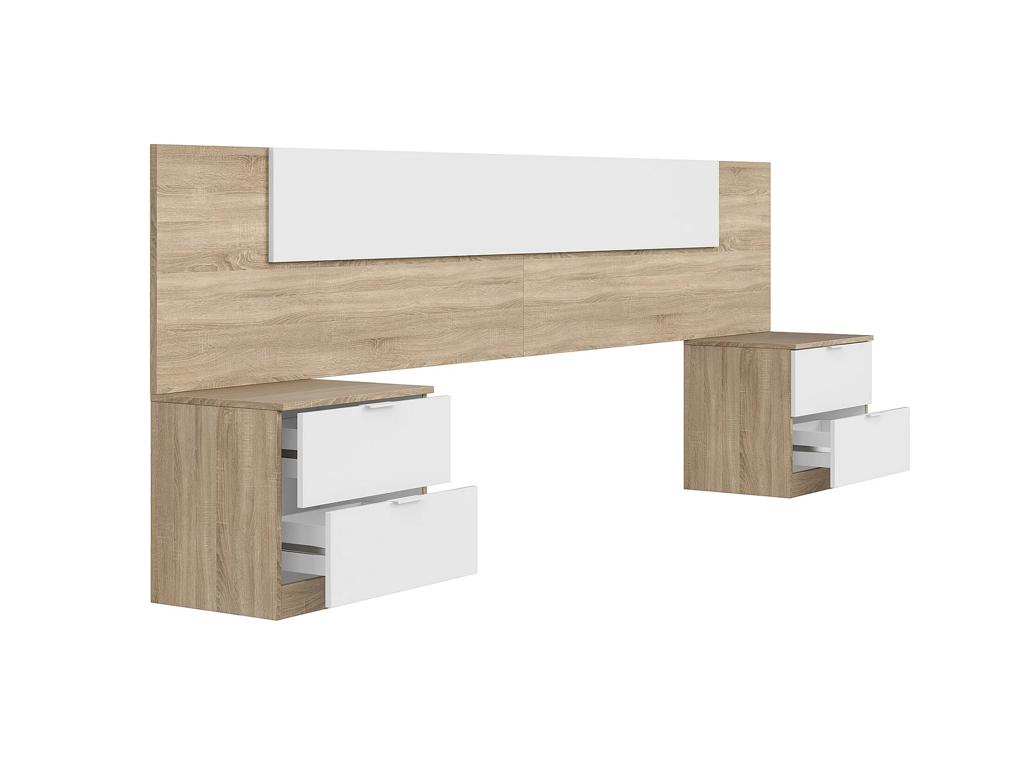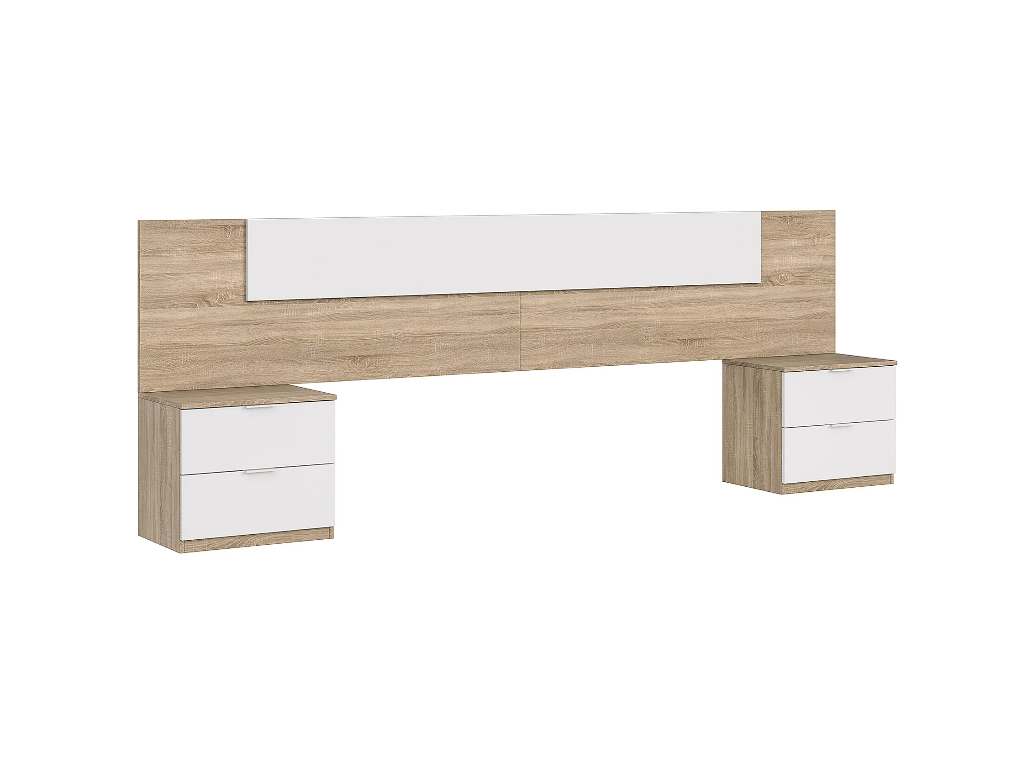 Tête de lit en mélamine avec 2 chevets coloris chêne canadian blanc artik - Hauteur 95 x Longueur 247 cm x Profondeur 38 cm