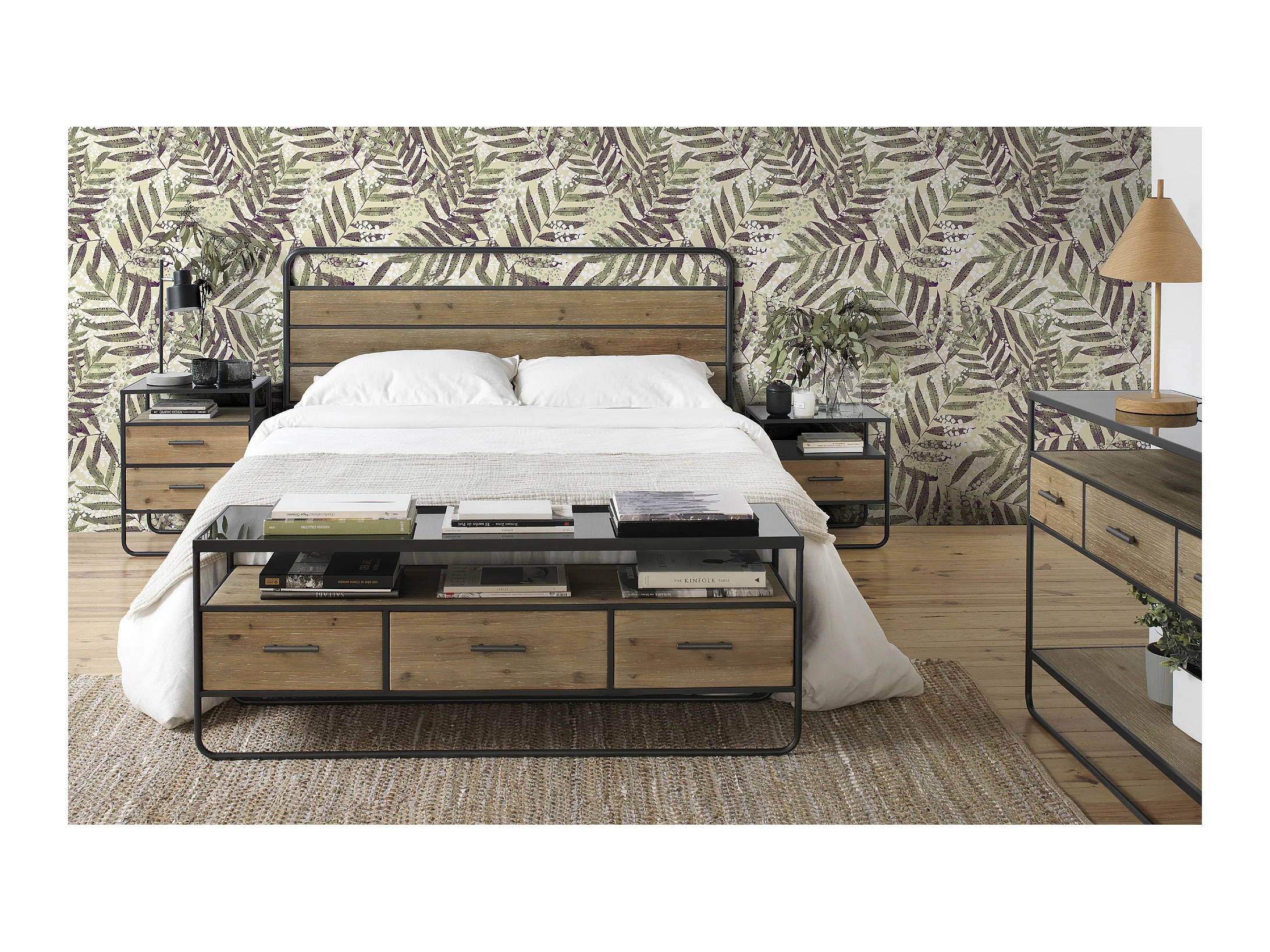 Tête de lit en sapin et fer 165x60 cm