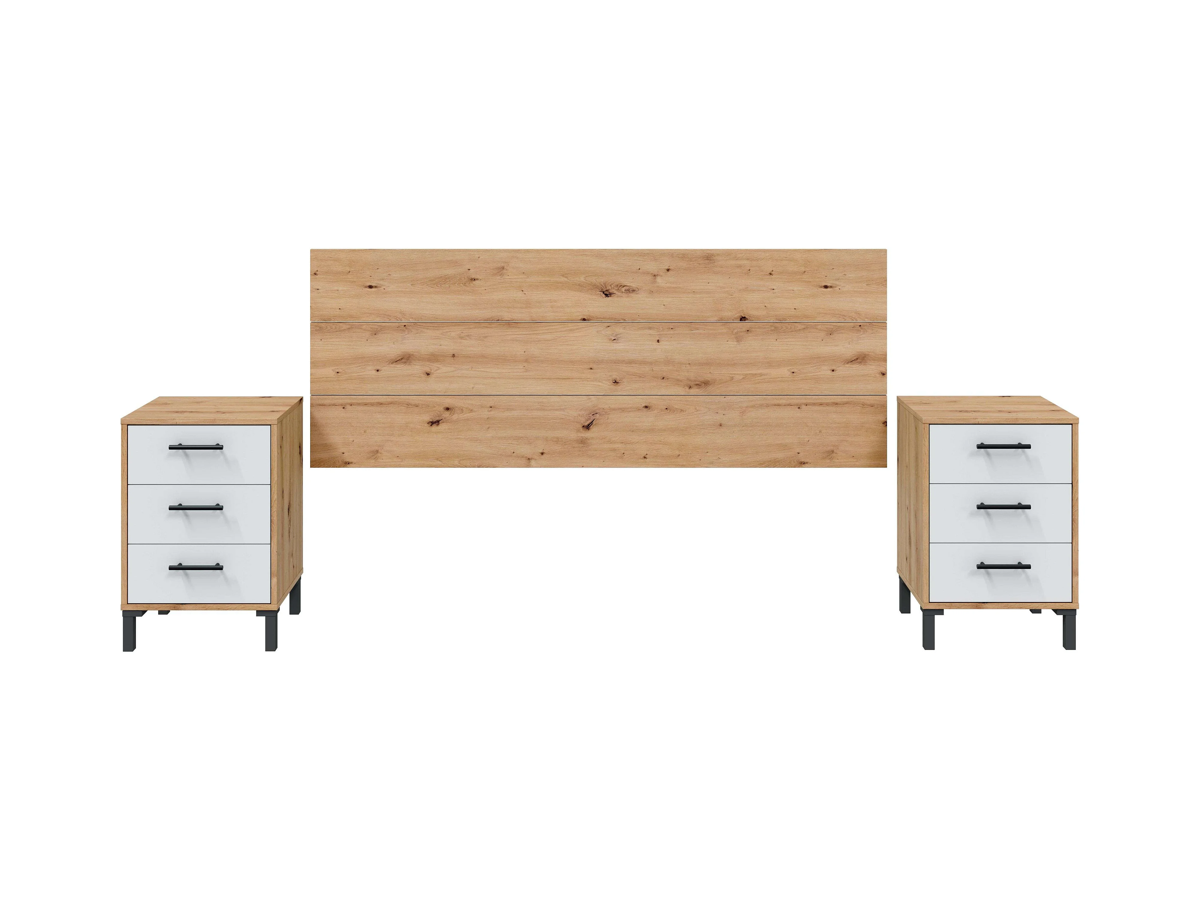 Tête de lit et tables de chevet de style nordique en chêne Nodi et blanc Artik 240 x 101 x 33 cm