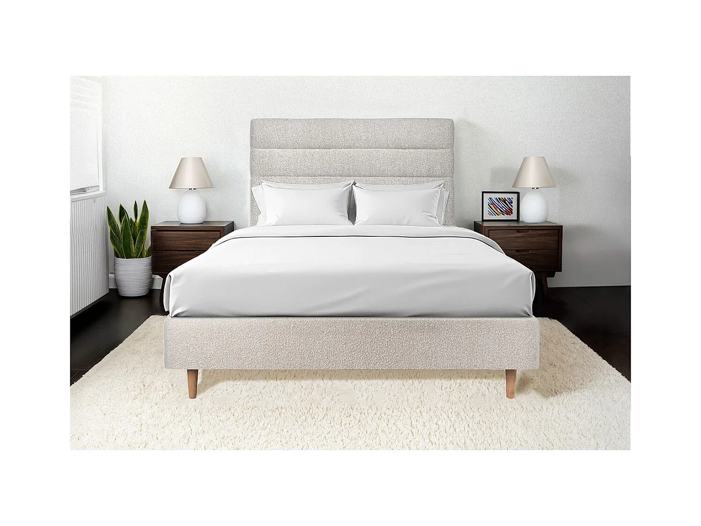 Tete de lit Lignes Bouclette Beige L 160 cm - Ep 10 cm rembourré