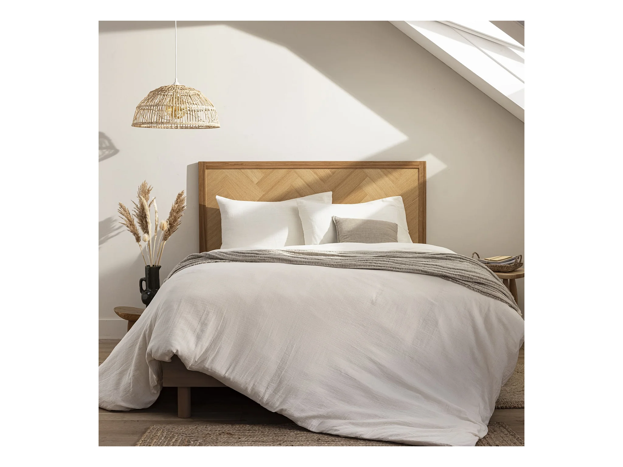 Tête de lit marqueterie 140 cm en bois massif naturel - Terre de Nuit