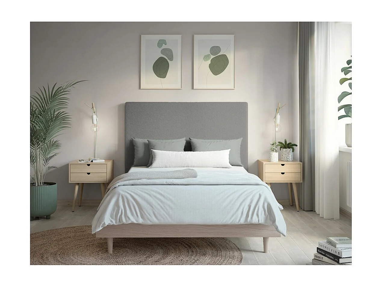 Tête de lit NUMA en tissu bouclette - Gris - Largeur 140 cm