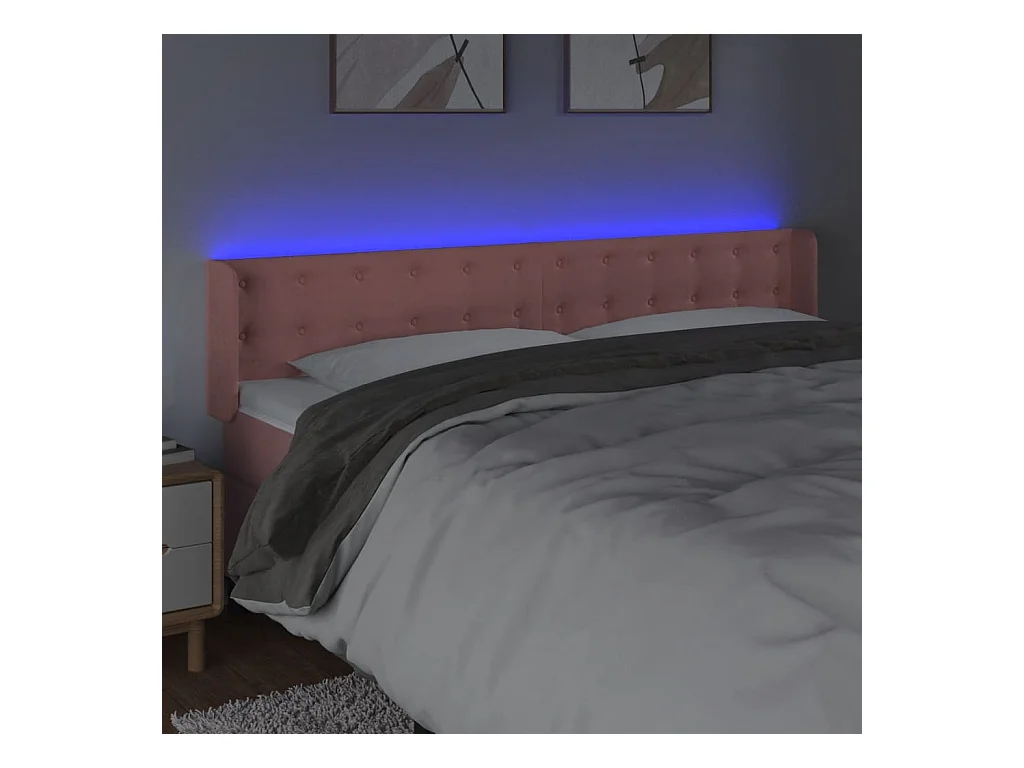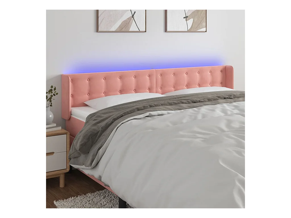 Tête de Lit | Panneau de tête pour lit Moderne à LED Rose 183x16x78/88 cm Velours