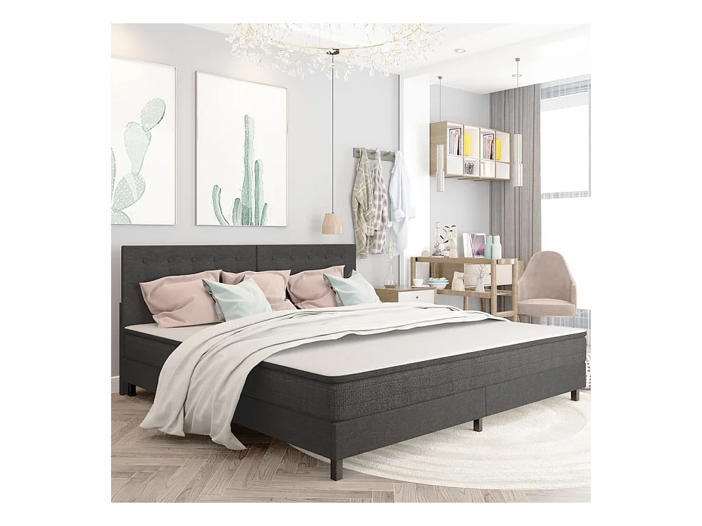 Tête de lit touffetée Gris foncé Tissu 200x200
