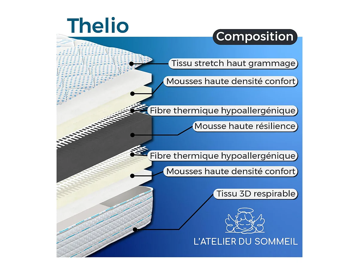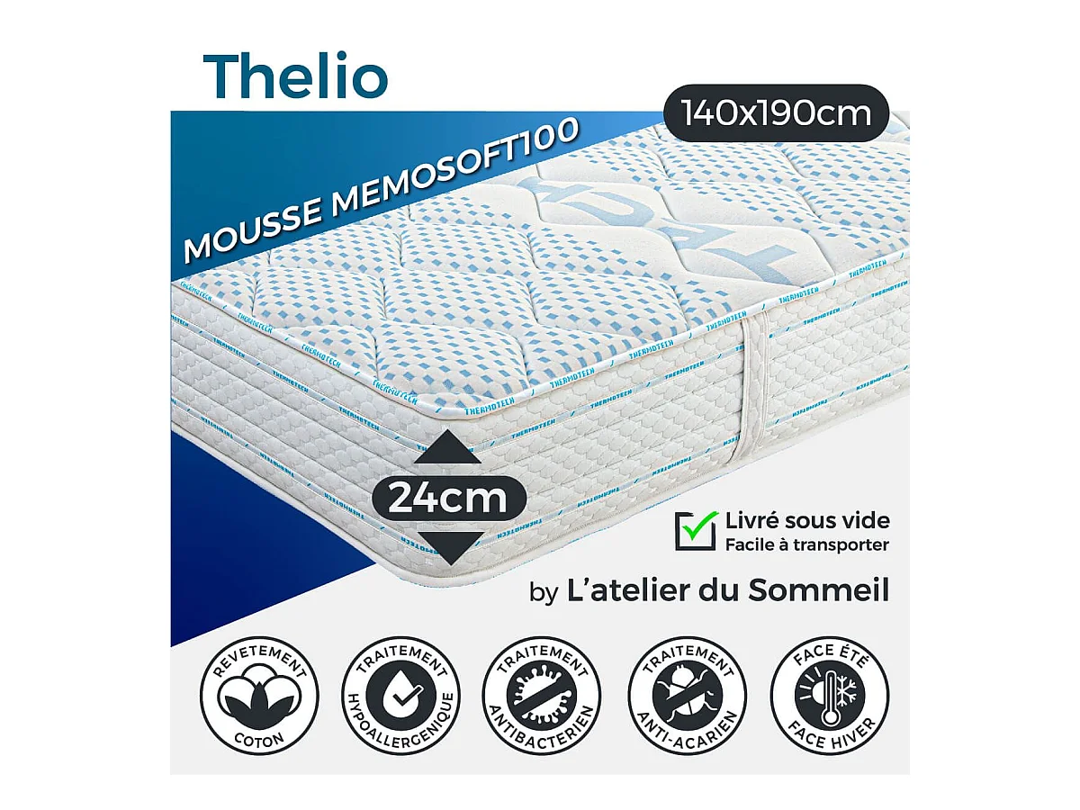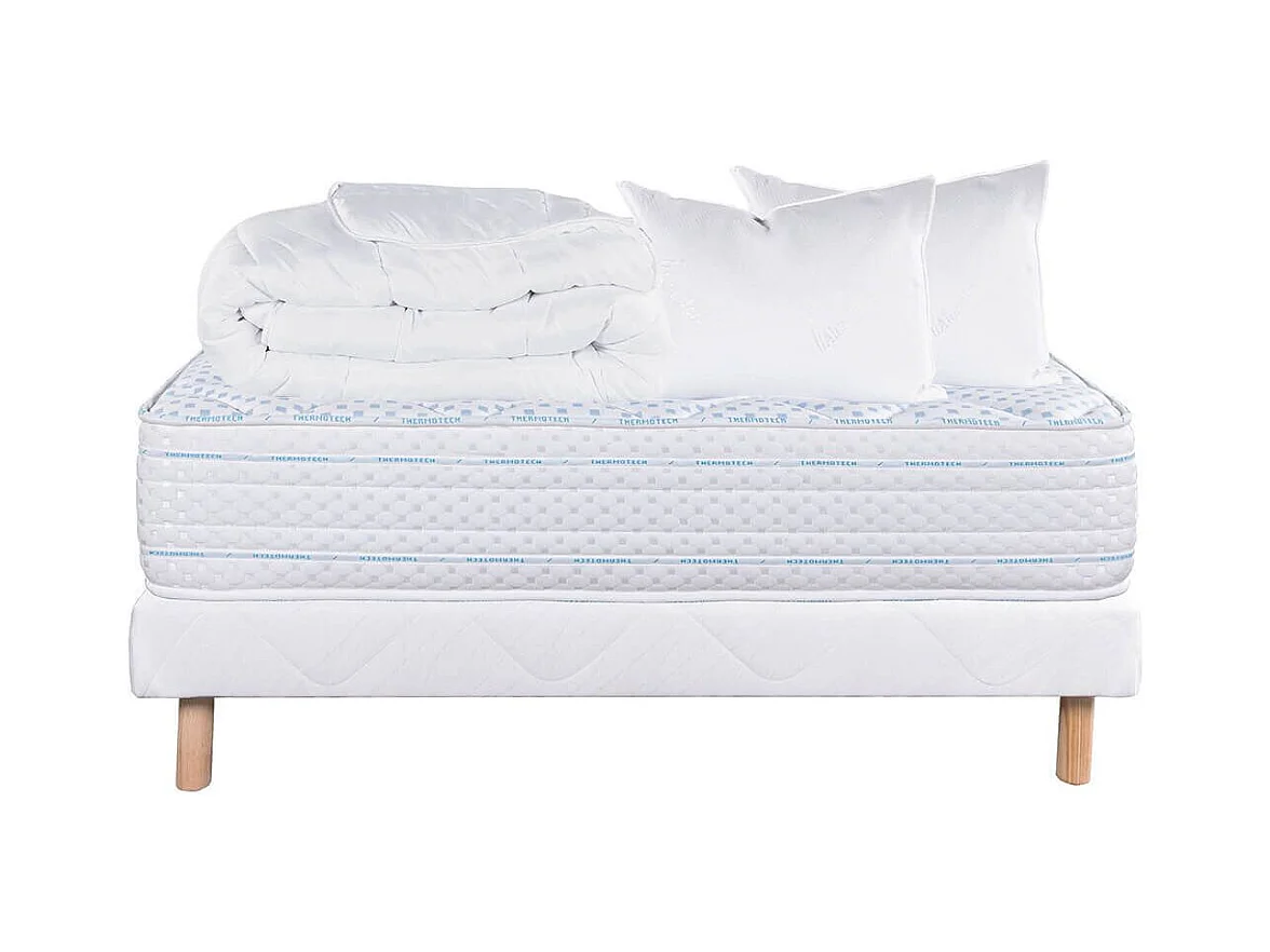 THELIO - Pack Matelas + Sommier Tapissier Blanc 140x190 cm + 2 Oreillers + 1 Couette